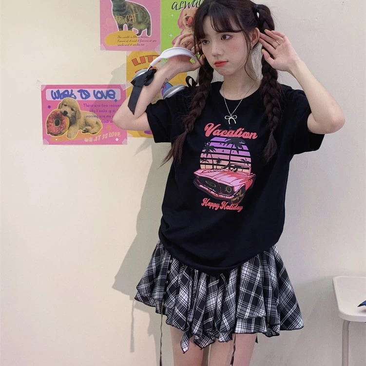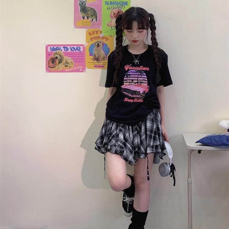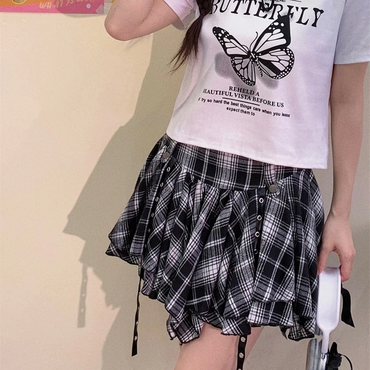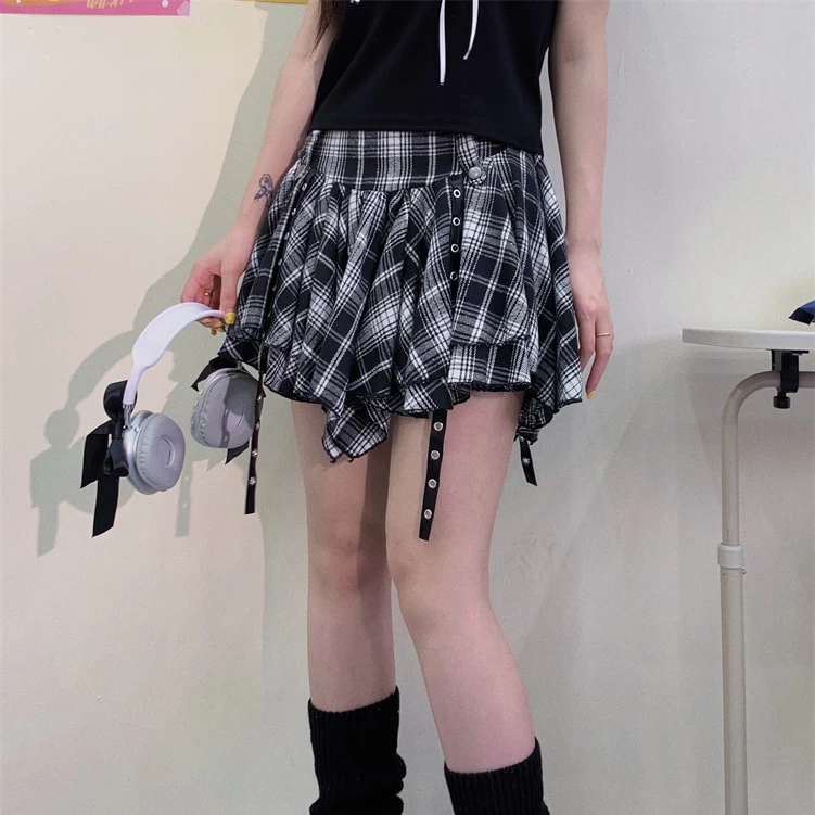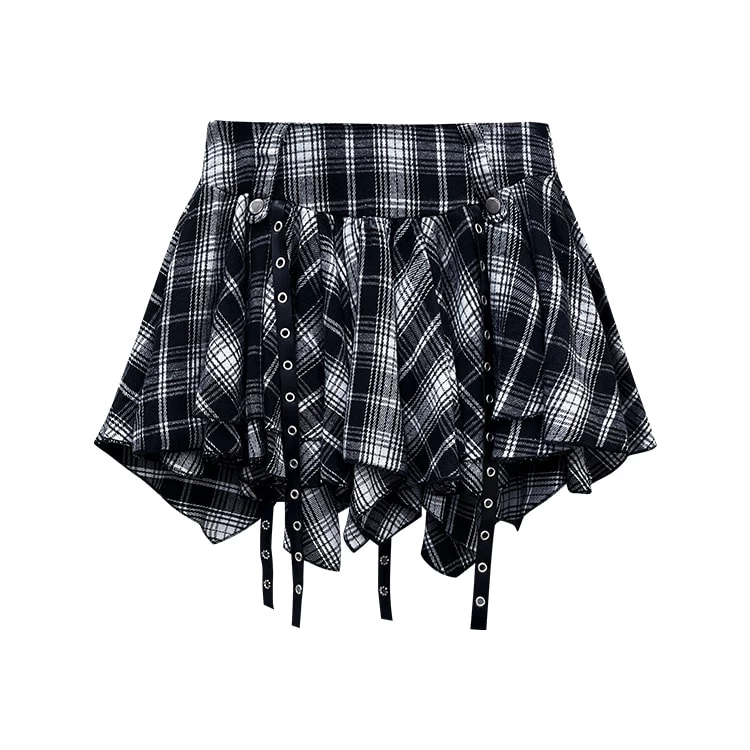 1 * American College Style Irregular Black White Plaid Short Skirt