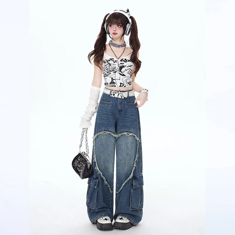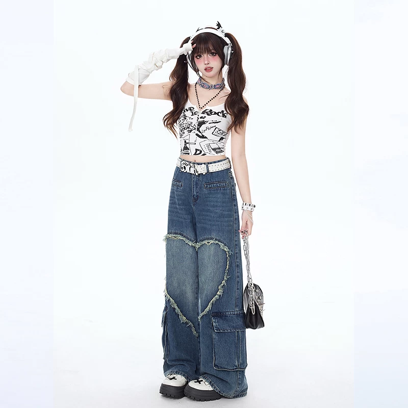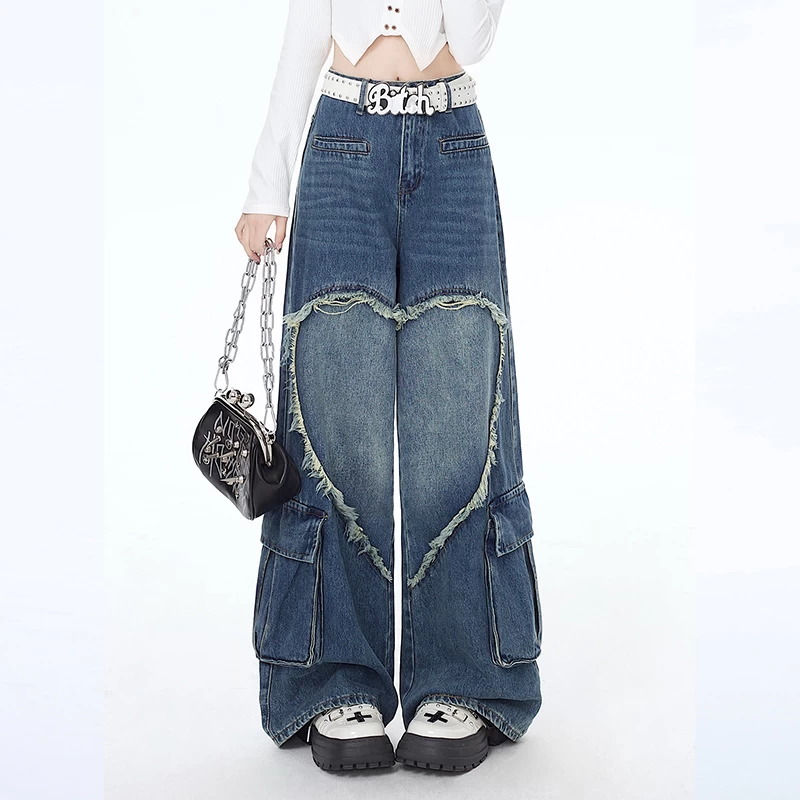 Step into the world of effortlessly chic American style with our American Girly Style Loving Heart Embroidery Straight Jeans. Crafted for the modern woman who loves to make a statement, these jeans feature intricate heart embroidery that adds a touch of playful elegance to your outfit. The straight cut offers a flattering silhouette while providing comfort and flexibility for all-day wear. Available in sizes S, M, and L, in classic blue or sleek black, these wide-leg pants are perfect for bringing a touch of Americana charm to your wardrobe this spring and summer.