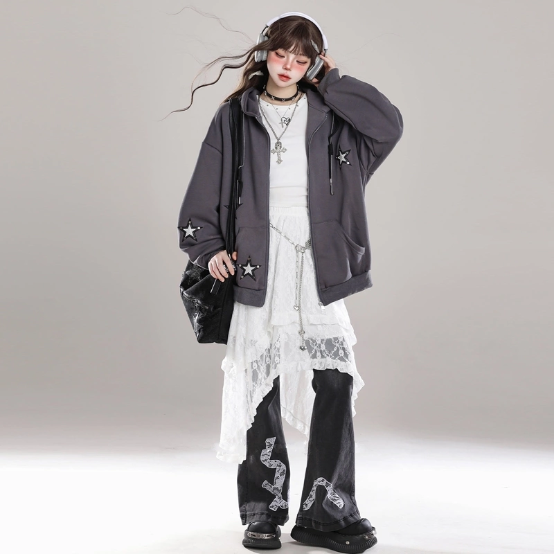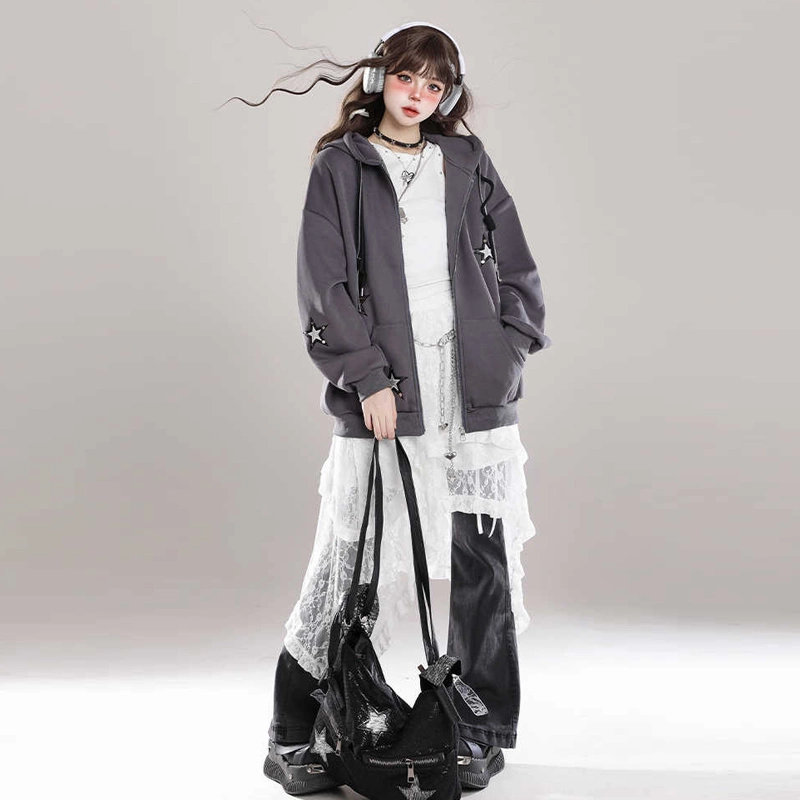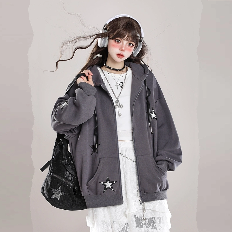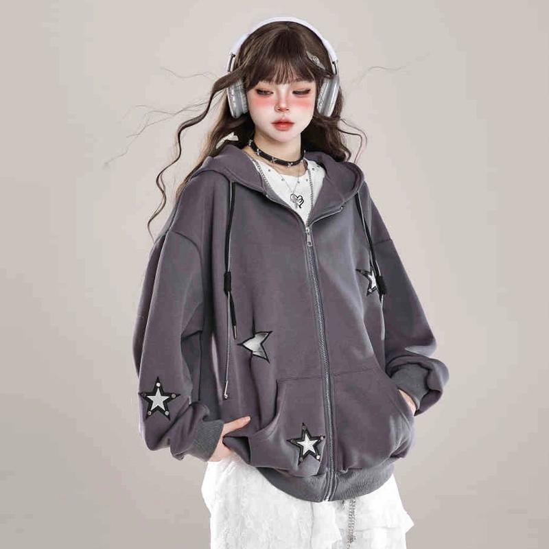 Introducing the American Star Embroidered Cardigan Sweatshirt, a chic blend of comfort and style for the modern woman. Designed with an effortlessly relaxed fit, this oversized hoodie is perfect for both spring breezes and autumn chills, making it your go-to essential throughout multiple seasons.