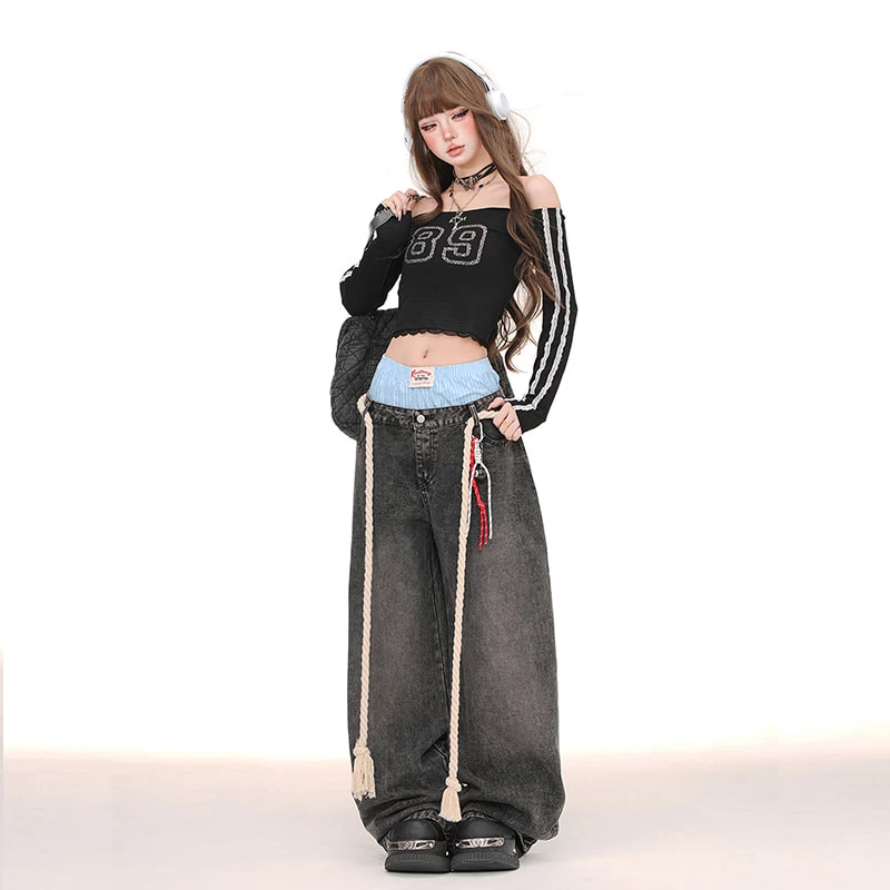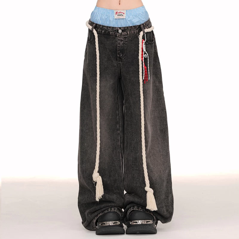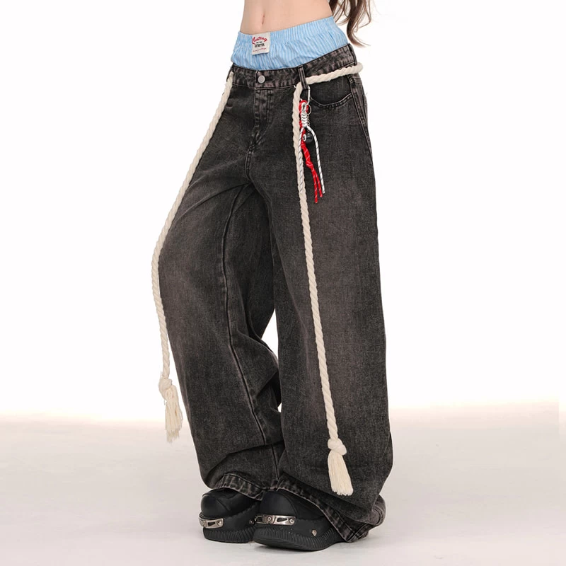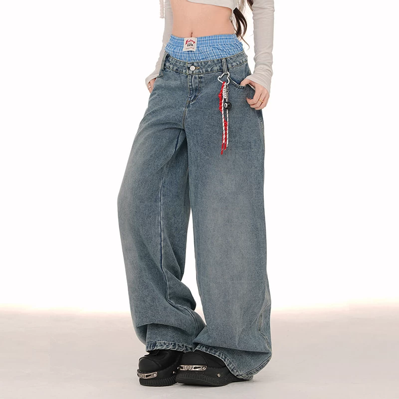 1 * American Style Double Waist Loose Wide-Leg Jeans