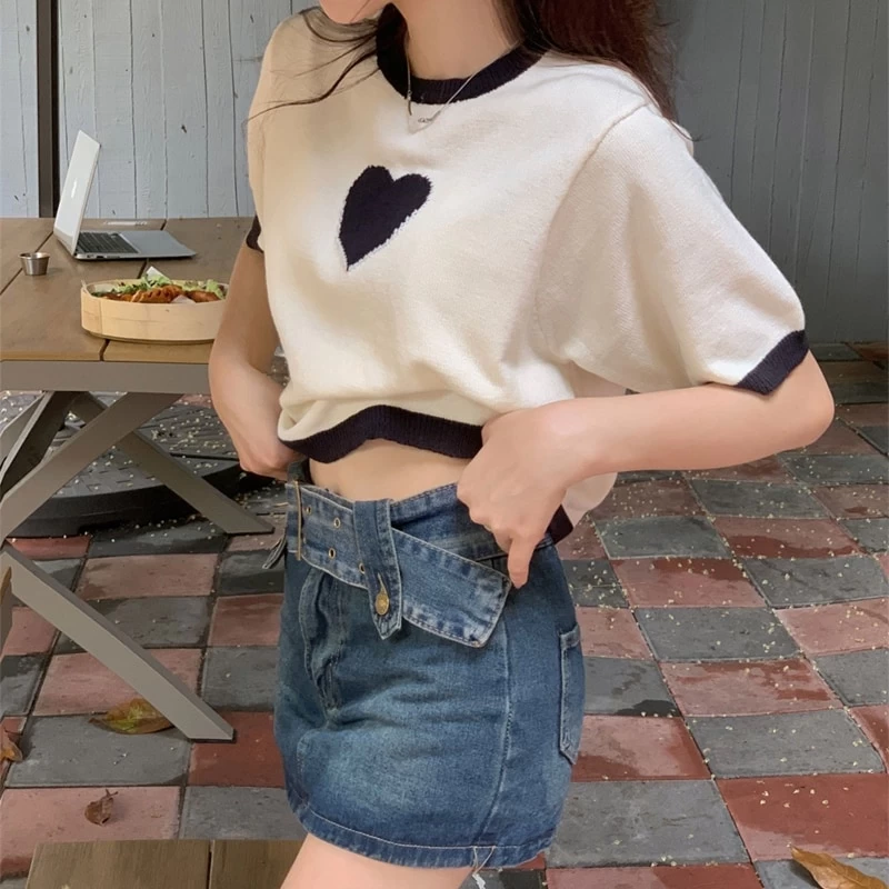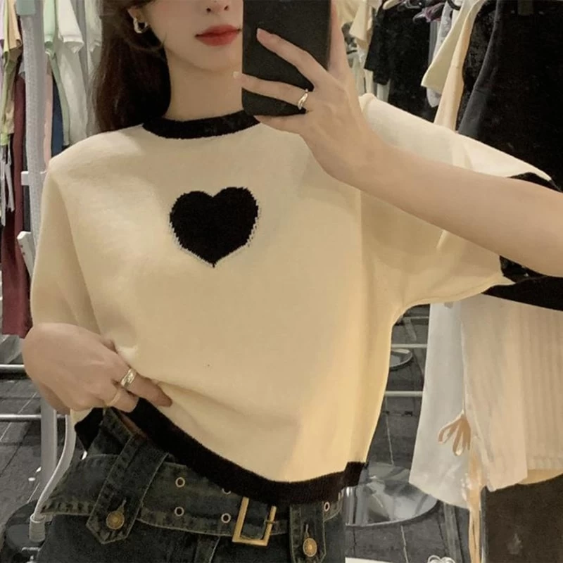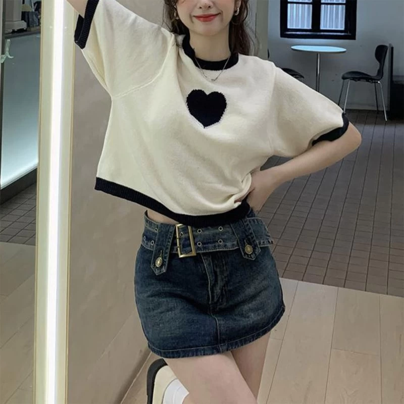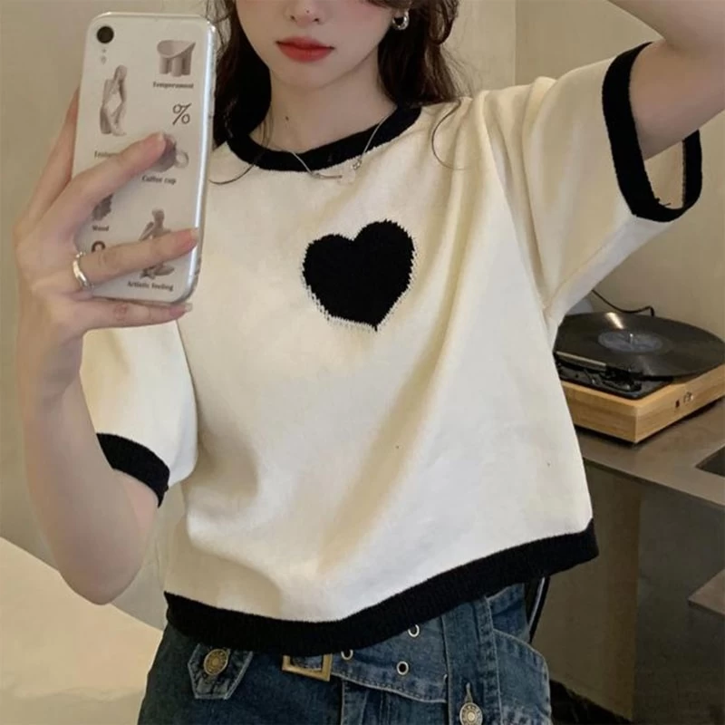 Looking for a stylish and comfortable Crop Top to wear this summer? Look no further than the Black Heart Contrast Crop Top! This Crop Top is made from a soft and stretchy knit fabric and features a cute love heart detail on the front. The contrast color trim adds a touch of style and makes this crop top perfect for wearing with jeans or shorts.