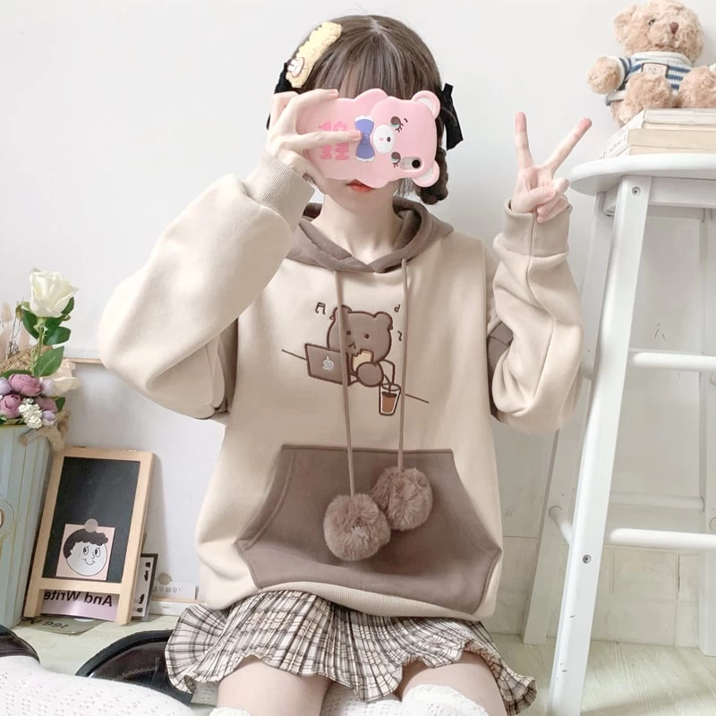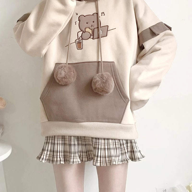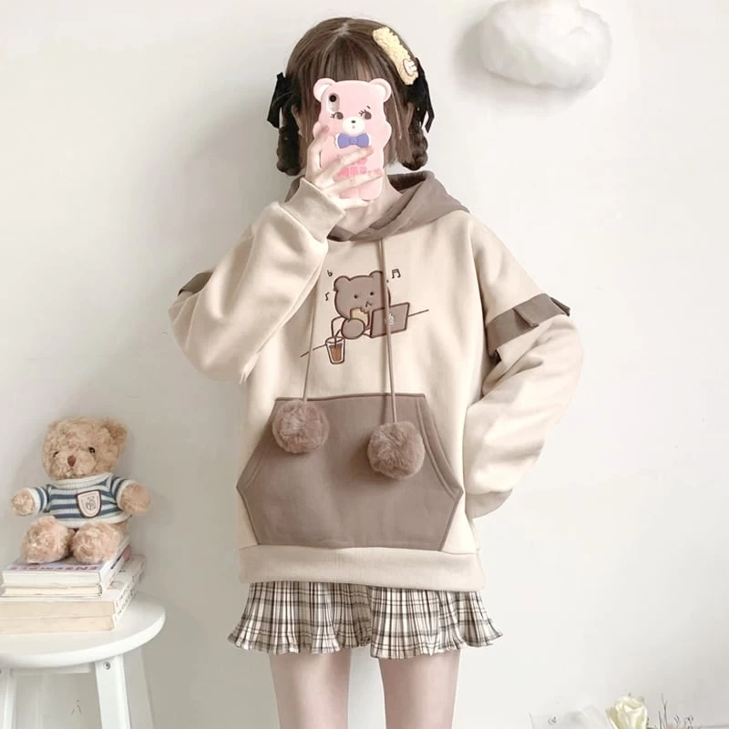 1 * Cute Bear Soft Girl Style Fake Two-Piece Hoodie