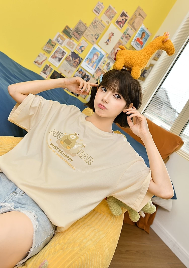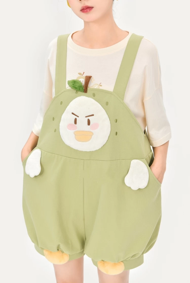 Introducing the Cute Cartoon Pattern Overalls in Mori girl style, a unique two-piece set that captures the essence of youth and fun. Made from soft cotton with an apricot green color, this outfit will make your summer days extra special. Its lantern-style casual straps and unique cartoon pattern provide an eye-catching look that is sure to turn heads.