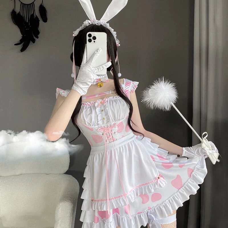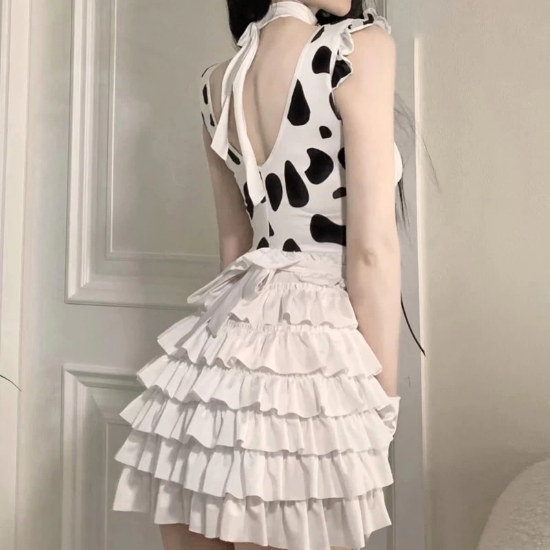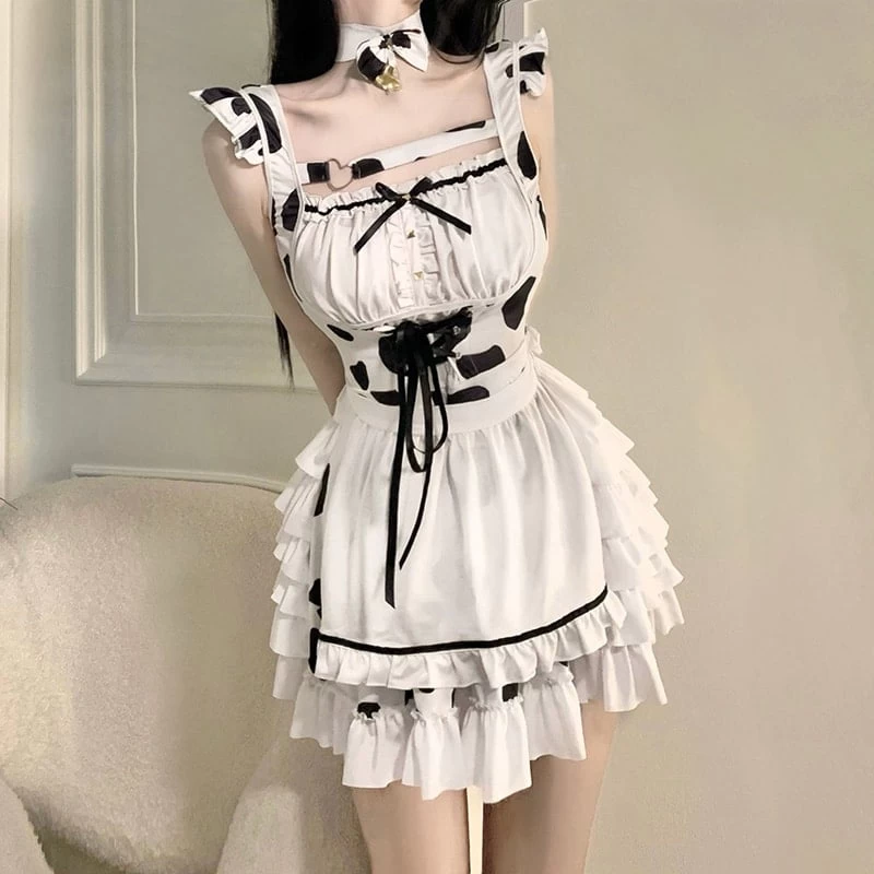 Looking for a fun and flirty way to show off your playful side? Then check out our Cute Cow Maid Dress Suit! This Lolita-inspired cosplay costume is perfect for any anime or manga fan, and features a backless bandage design with ruffles and a cow print that is sure to get you noticed.