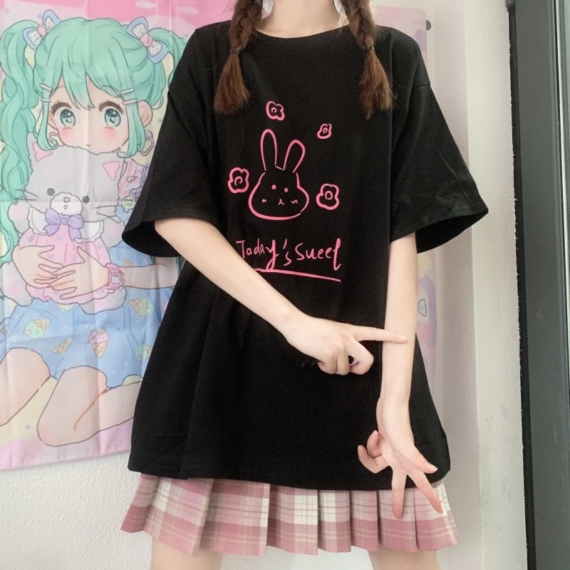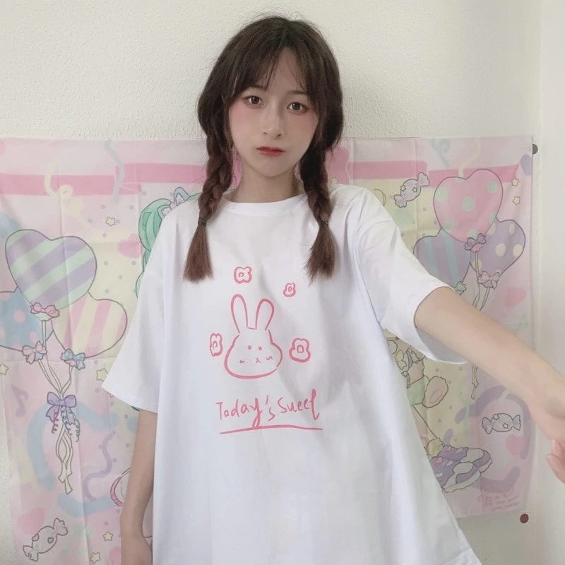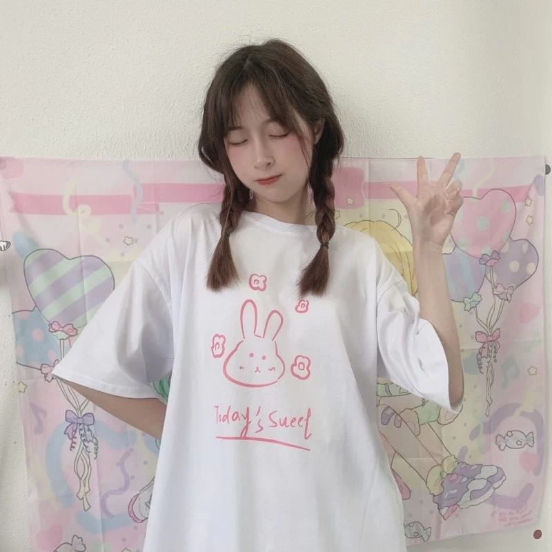 Looking for a rad and trendy top to wear out? Check out this Cute Rabbit Printed Loose T-shirt! It’s perfect for hot summer days or a fun night out with friends. The kawaii e-girl rabbit graphic is super cute and the hem of the ruffle adds a touch of punk 90s streetwear style. Plus, the short sleeve design makes it perfect for hot summer days. You’ll love wearing this T-shirt!