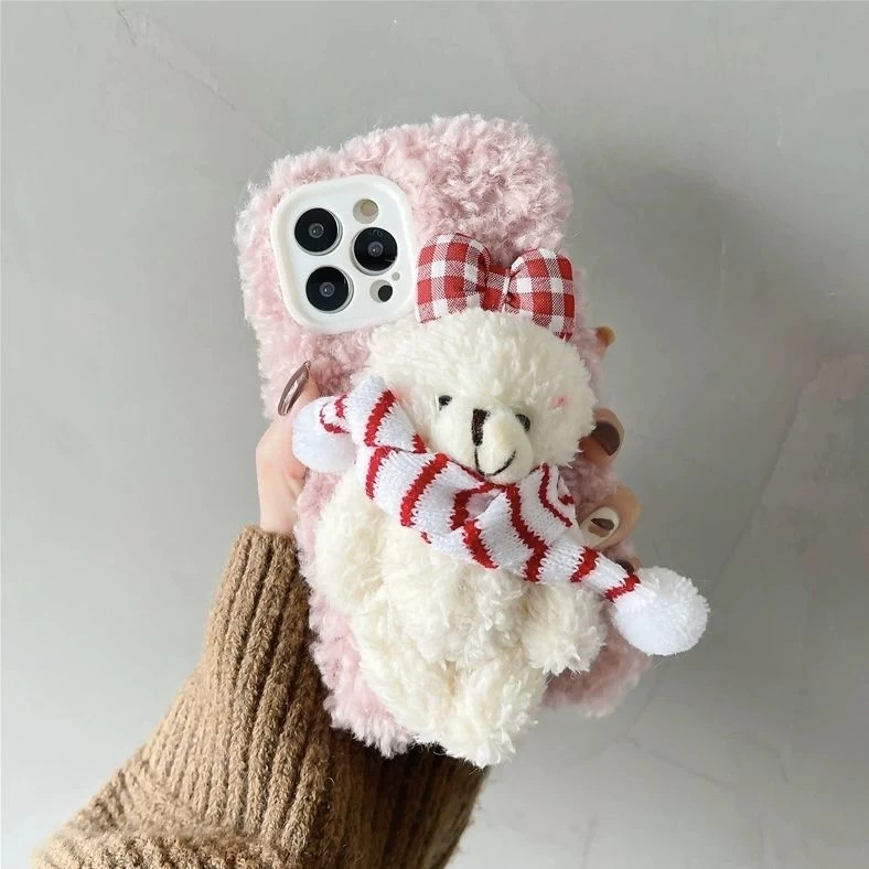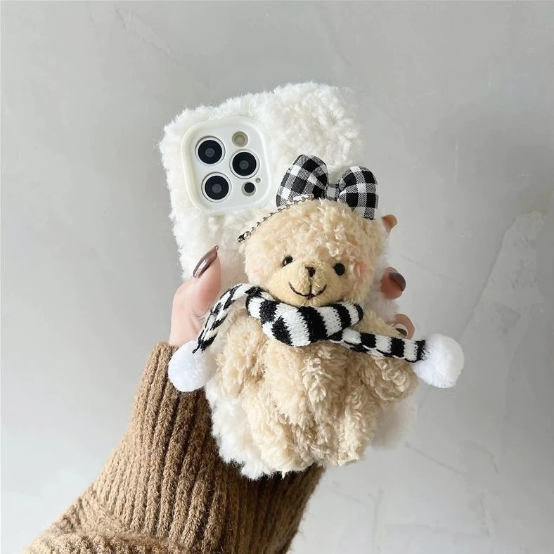 1 * Cute Scarf Bear Fuzzy iPhone Case