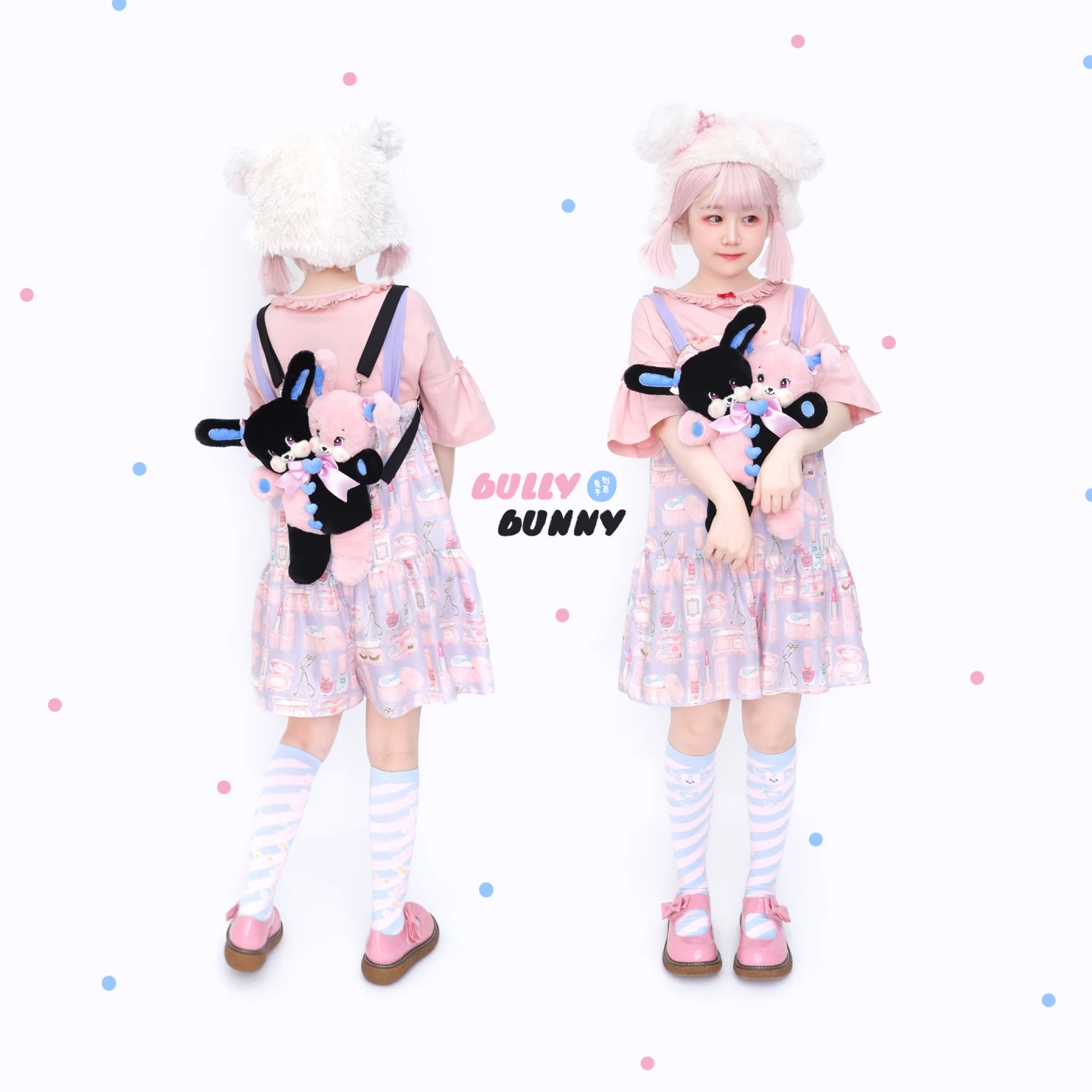 The Double Heads Kitty Plush Bag by Bully Bunny is a must-have accessory for any fashion-forward person. This unique, original design features two adorable kitties with a dark kawaii style. It comes complete with a backpack belt, allowing you to wear this Kawaii bag as a crossbody or over the shoulder. The size of 30cm x 24cm is perfect for carrying all your essentials in one place. Plus, it’s super soft and comfortable – perfect for everyday use!