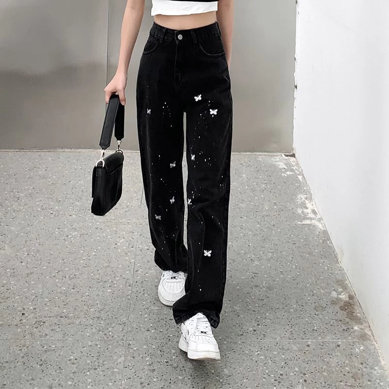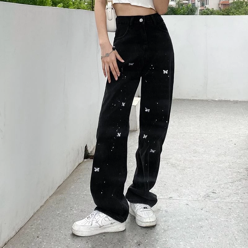 Looking for a stylish and comfortable pair of jeans? Look no further than these embroidery butterfly denim pants! Made from high-quality denim, these pants are perfect for streetwear or any other casual occasion. They feature an all-over butterfly print, as well as a black high waist and wide leg design.
