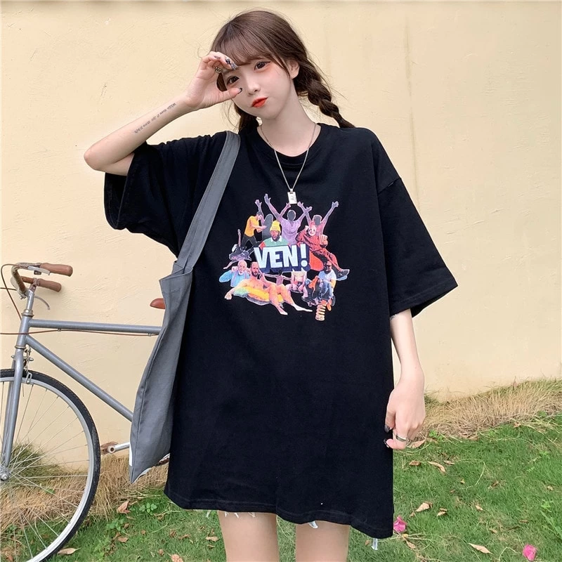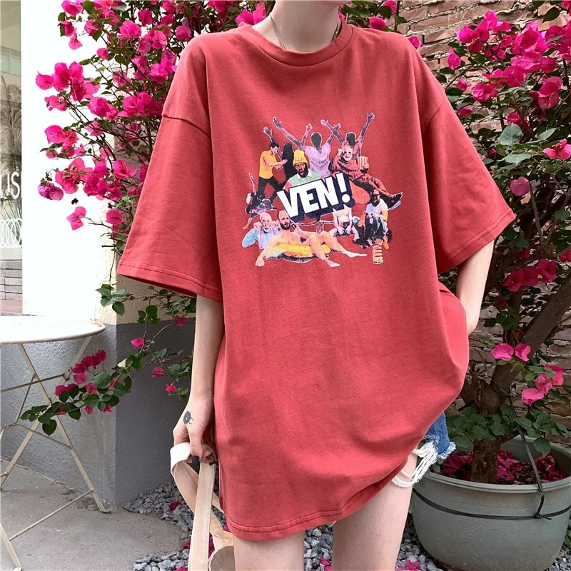 This loose T-shirt is perfect for summer! The fun letter printing will add some personality to your outfit, and the mid-length cut makes it perfect for hot weather. The casual short-sleeved style is comfortable and easy to wear, and the wild round neck adds a touch of style.