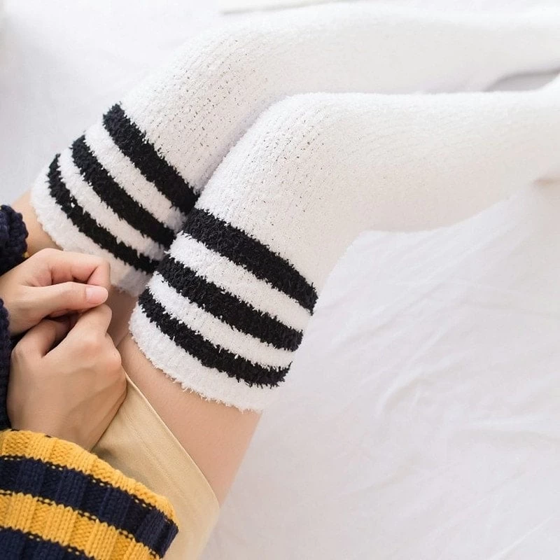 1 * Kawaii Fuzzy Striped Thigh Highs Socks