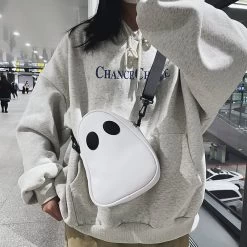 Introducing the Ghost Crossbody Purse Bag, a unique and stylish messenger bag for women and men. This bag is made of durable canvas with a single shoulder strap and a front zip pocket. The bag has an ugly, Ghost-like design that will make you stand out from the crowd. The white and black colors are perfect for any outfit, and the size is perfect for everyday use.