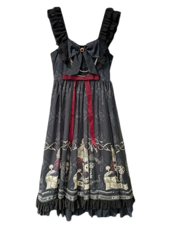 1 * Gothic Ruffles Bows Floral Print Black Lolita Dresses