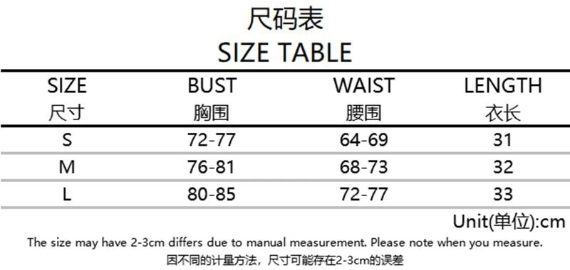 L – Bust 90cm/35.4″, Length 26cm/10.2″