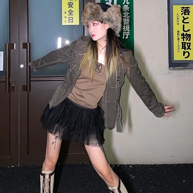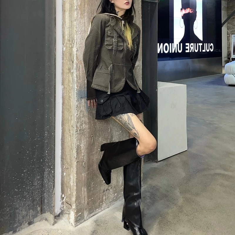 1 x Hot Girl Retro American Zipper Jacket
