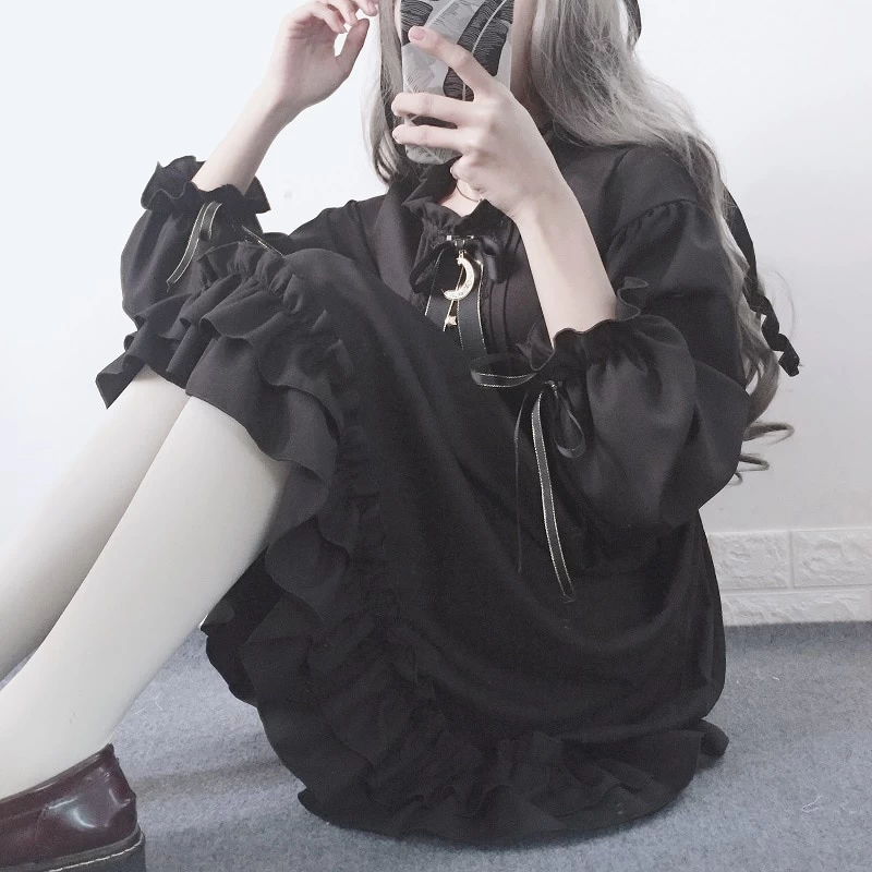 This Japanese Harajuku Bow-knot Flounced Dress is the perfect addition to your wardrobe if you’re looking to add a touch of Gothic Lolita style to your look. The black chiffon fabric is adorned with ruffles and a bow-knot detail, making it perfect for summer occasions. The dress is also comfortable and flattering, thanks to the bandage style that hugs your curves.