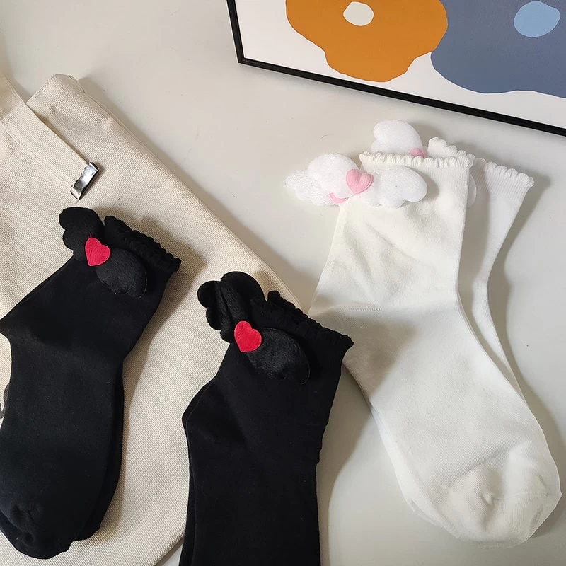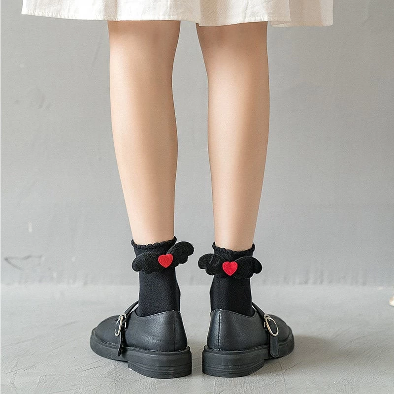 These Japanese Lolita Cute Little Angel Socks make any outfit look instantly more adorable! The perfect accessory for your love of all things Kawaii, these Cute socks come in a variety of colors and feature little angel wings on the back. Made from soft cotton material, they are comfortable to wear all day long.