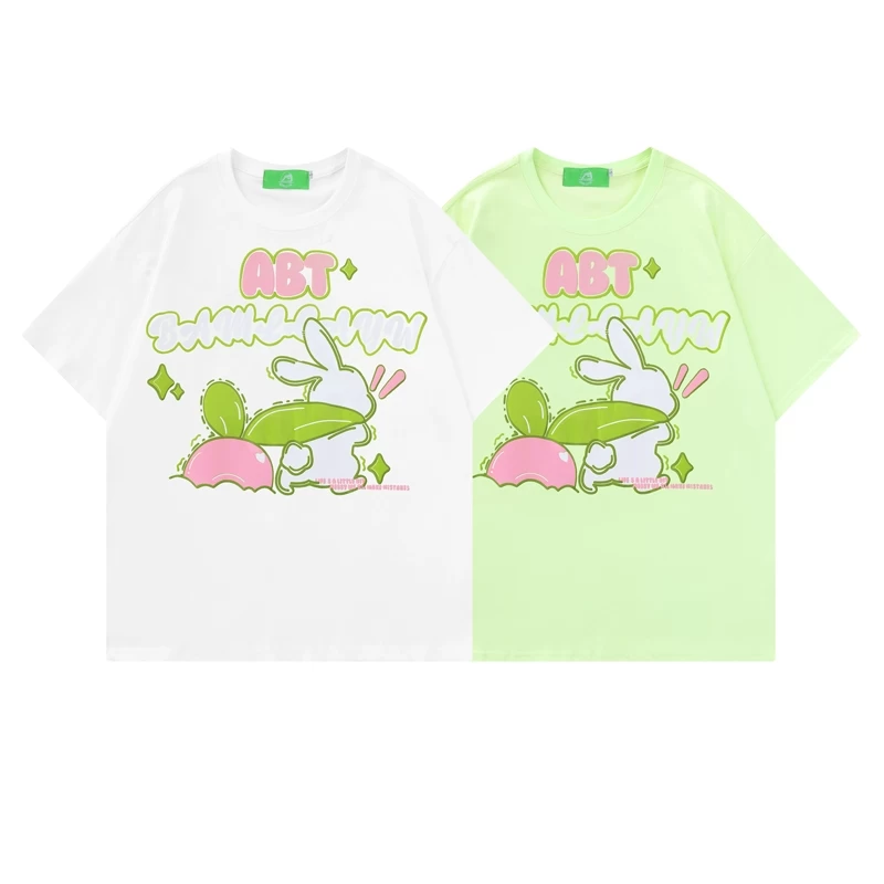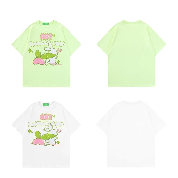 Introducing our Japanese Retro Cartoon Rabbit Print T-shirt, the perfect blend of nostalgia and style! With its vibrant colors and adorable rabbit print, this Kawaii t-shirt is sure to turn heads wherever you go. Made from 100% cotton, it not only feels incredibly soft against your skin but also allows for breathability, keeping you cool and comfortable all day long. The loose-fit design makes it suitable for both men and women, offering a versatile option for couples who love coordinating their outfits. Available in green or apricot, this t-shirt will add a touch of fun to any outfit. Whether you’re heading out for a casual day with friends or just want to express your love for retro cartoons, our Japanese Retro Cartoon Rabbit Print T-shirt is the perfect choice.