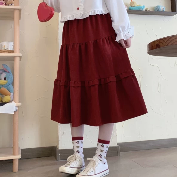 Our Japanese soft girl sweet A-line skirt will add instant pizzazz to any outfit! A stylish and feminine design, this beige-red pleated skirt is cut in a flattering high-waisted fit and features a wood ear detail for extra sweetness. The soft material of the skirt makes it comfortable to wear while the one size fits all offers versatility. Perfect for special occasions or everyday wear, this sweet Japanese-style A-line skirt is sure to become a wardrobe favorite!