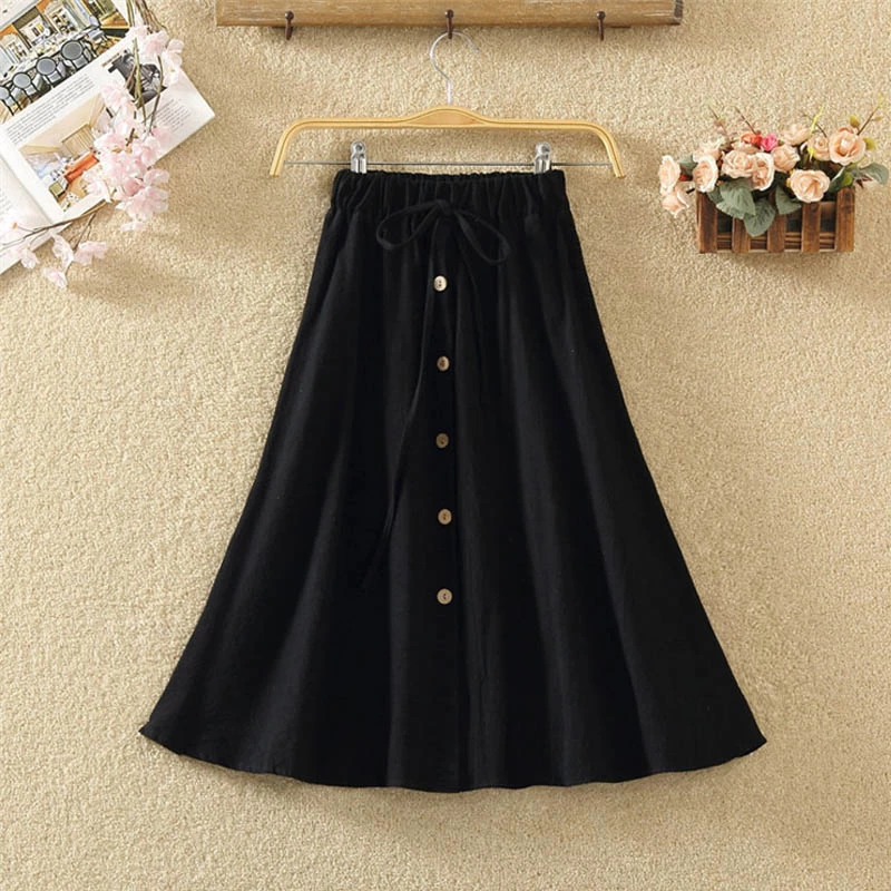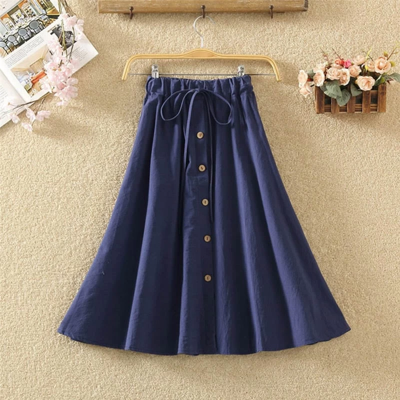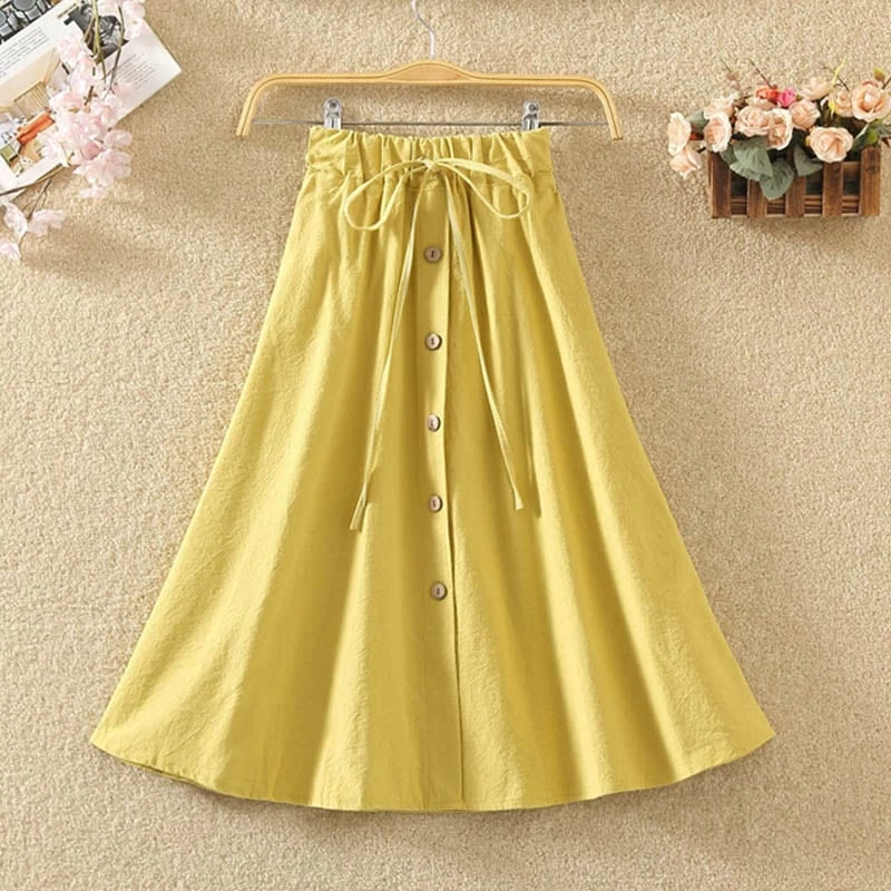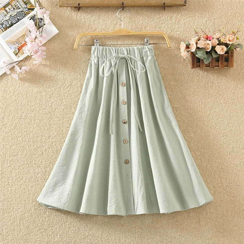 1 * Japanese Summer Button Linen Flounce Skirt