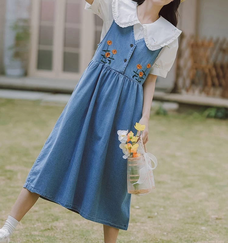 Looking for something stylish and sweet? Check out our Japanese Sweet Denim Suspender Skirt Set! This Skirt Set is perfect for summer, with a breezy collared shirt, loose vest, and skirt. The denim is light and soft, with a touch of stretch for a comfortable fit. Plus, the suspenders add a fun and flirty touch. Whether you’re dressing up or down, this Denim Skirt Set is sure to please.