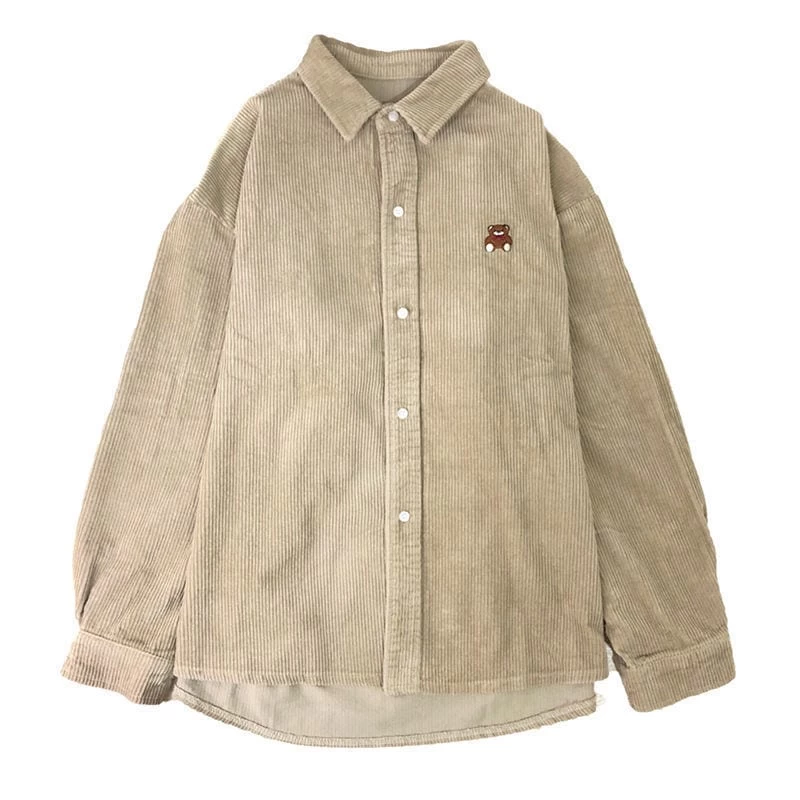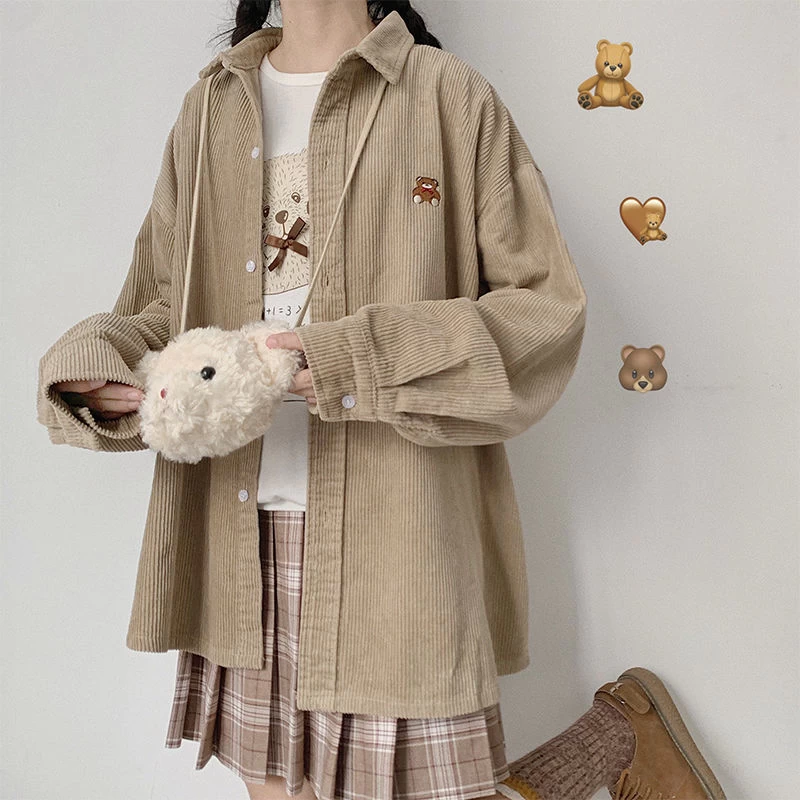 This Kawaii Bear Corduroy Shirt is perfect for fall! The soft corduroy fabric is comfortable and warm, and the kawaii bear print is adorable. The shirt has a women’s Asian style cut, with a loose fit and a button-up front. It’s also embroidered with cute little bears, adding an extra touch of whimsy.