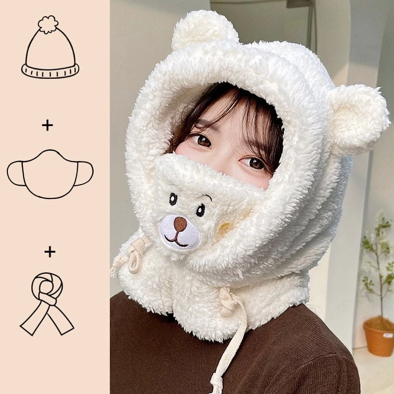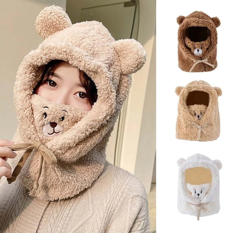 The Kawaii Cartoon Bear Mask Hat Set includes everything you need for a wintering in style. From its soft and plush material to its cute bear ears, this set will keep you warm and looking good.