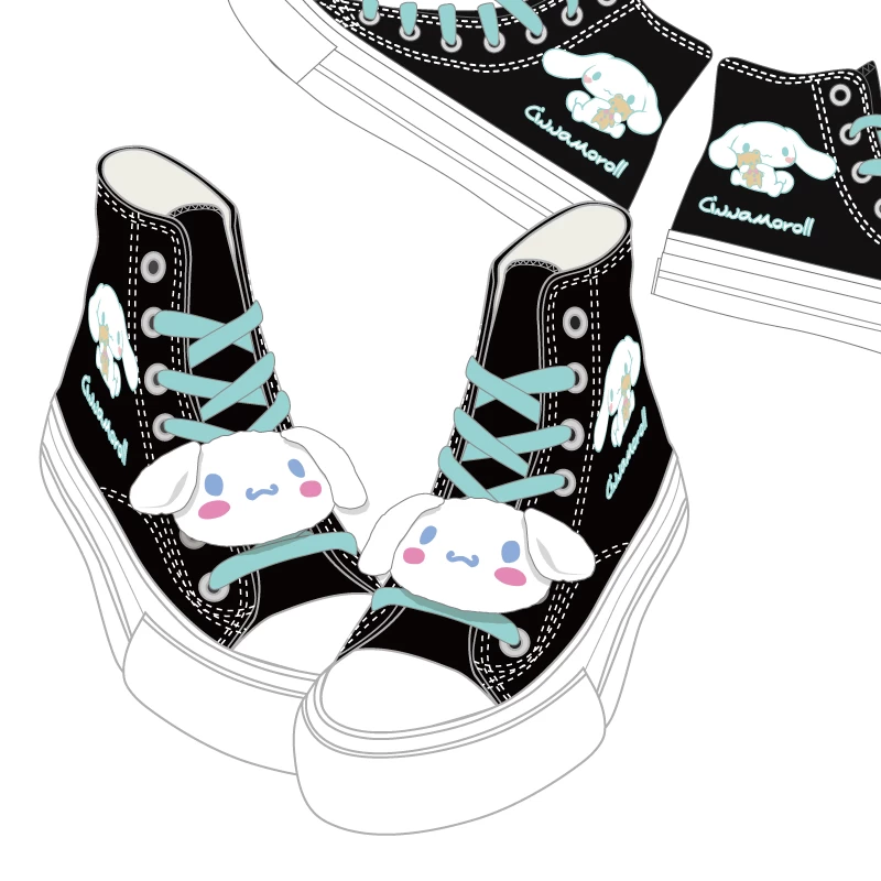 These Kawaii Cinnamoroll High-Top Canvas Shoes are the perfect winter fashion statement for young girls. Not only do they provide protection against cold weather with their velvet inner lining, but they also offer a unique and fun look that will make any girl stand out from the crowd. The vibrant colors and playful design of these Canvas Shoes channel an edgy yet cute aesthetic to keep your feet looking fashionable no matter what you wear them with.