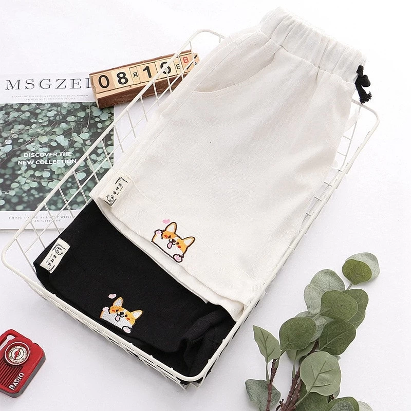 Are you looking for a summer short that is both kawaii and comfortable? Look no further than our kawaii corgi basic shorts! Made with a soft and lightweight fabric, these shorts are perfect for hot summer days. The wide-leg silhouette provides plenty of room to move, while the drawstring waistband ensures a comfortable fit. Plus, the cute embroidery on the front adds a touch of flair.
