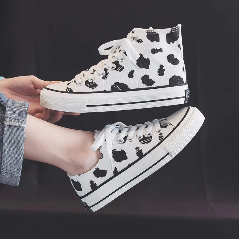 Looking for something fun and unique? Check out these Kawaii Cow Print Canvas Shoes! Not only are they stylish and trendy, but they’re also incredibly comfortable. You’ll love the platform sneakers style, which gives you a little extra height and makes you feel confident and in control. The vintage canvas material is also strong and durable, perfect for any activity or adventure. So grab a pair of these amazing shoes today and start enjoying your new favorite accessory!
