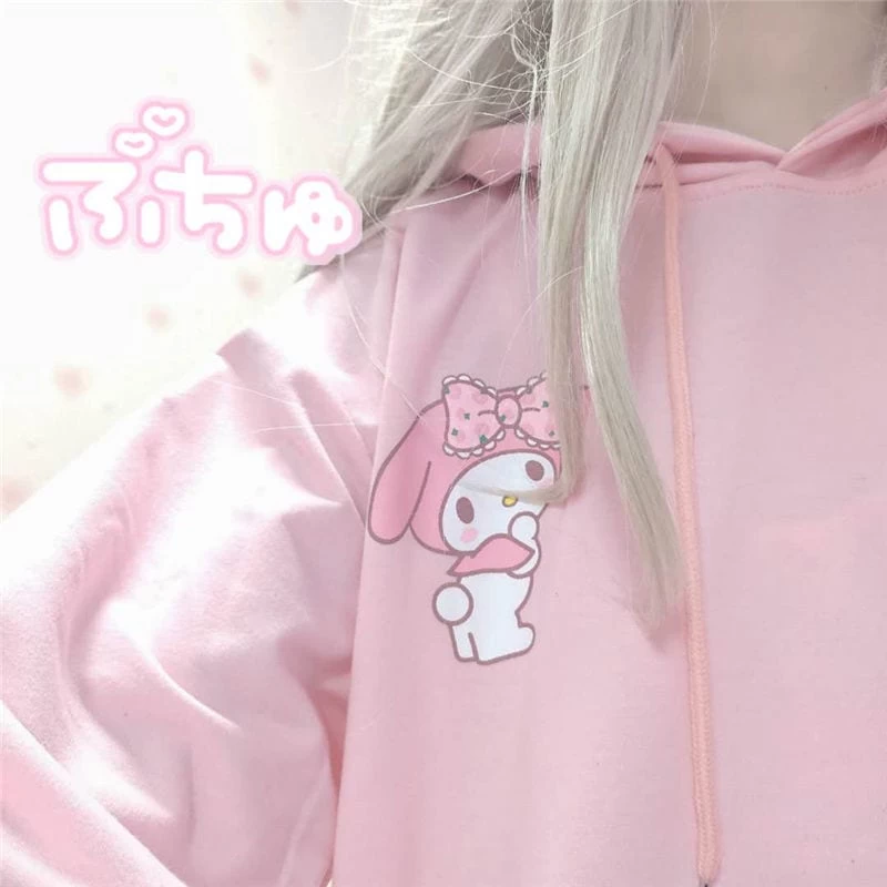 This Kawaii Cozy Melody Pink Hoodie is the perfect way to keep warm during spring and summer. The pink print is cute and sweet, and the oversized hoodie style is perfect for college students. The loose fit allows you to move and breathe easily, and the Japanese ins keeps you cozy all day long.