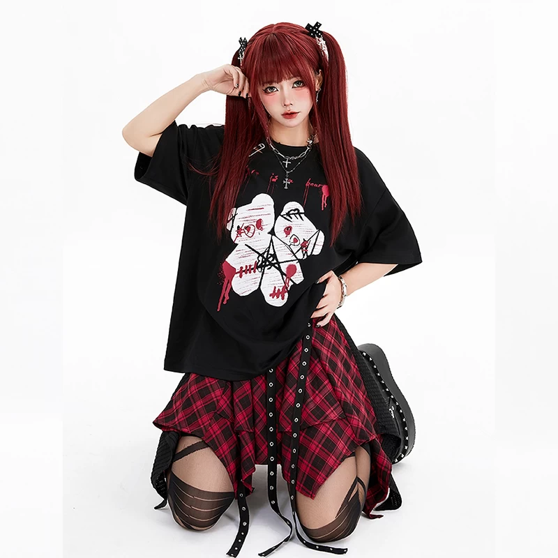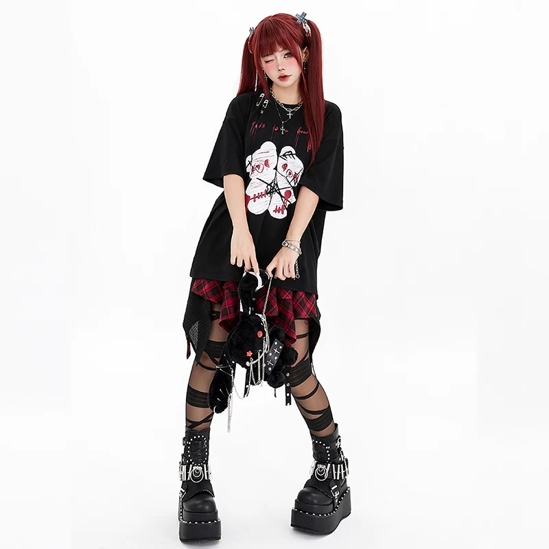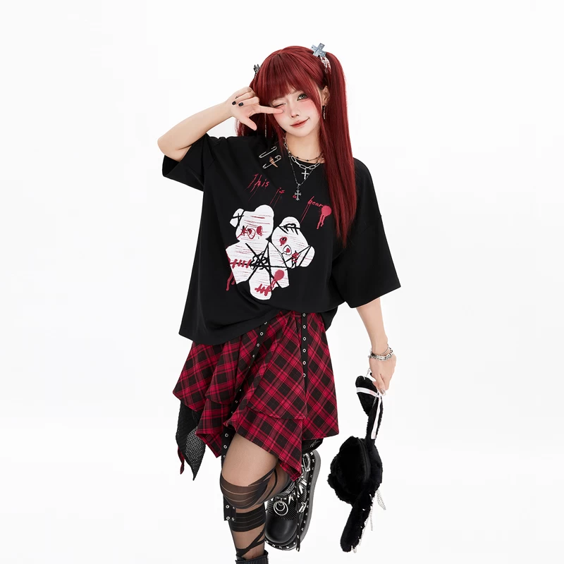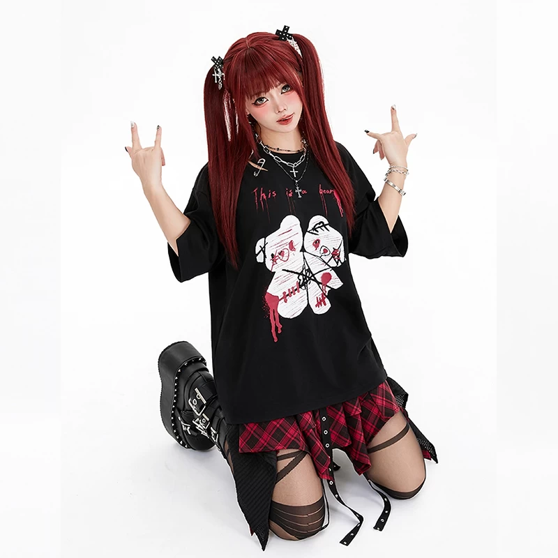 Indulge in the epitome of adorable fashion with our Kawaii Cute Cartoon Bear Loose T-Shirt! Elevate your style game with this delightful Dark Abby Sweet Cool Bear Print Pin Loose Tattered Summer T-Shirt, featuring a charming bear print that adds a touch of whimsy to any outfit. Crafted from high-quality polyester fabric, this top is designed for comfort and durability, ensuring you stay fashionable all season long. Available in sizes S, M, and L and presented in a sleek black color, this Kawaii t-shirt exudes effortless coolness while making a bold statement.