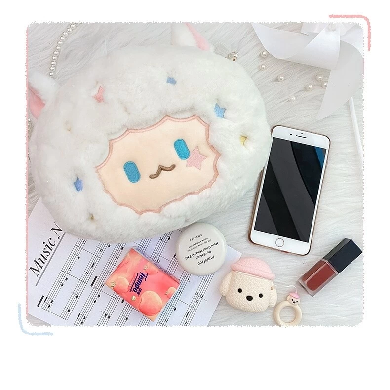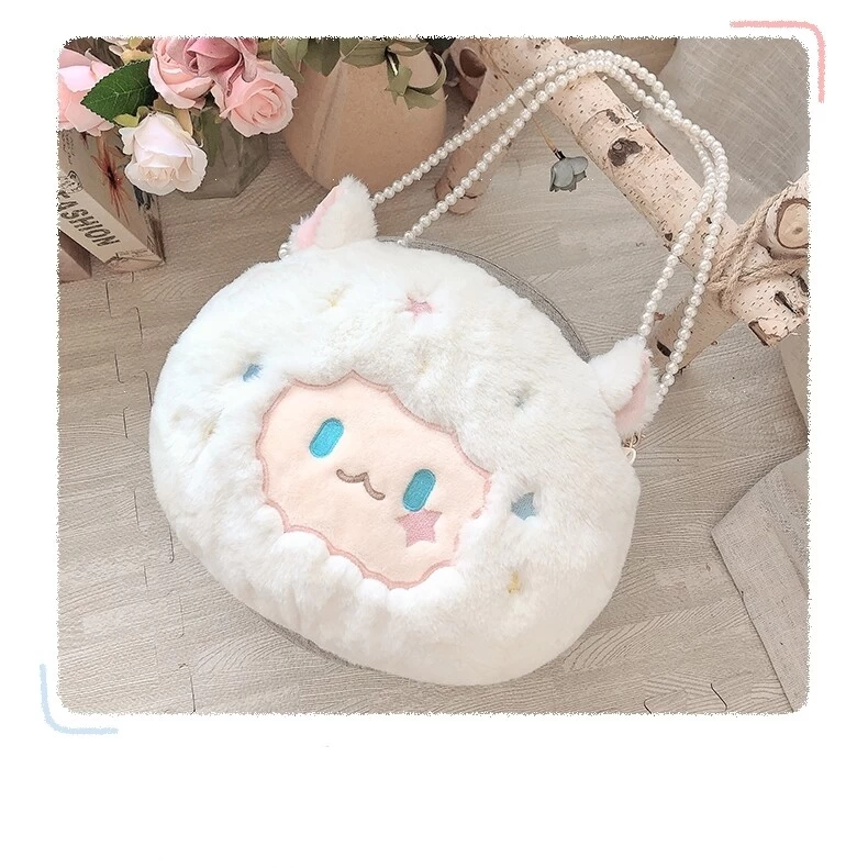 1 * Kawaii Cute White Cartoon Sheep Plush Shoulder Bag