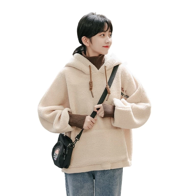Introducing the Kawaii Fake Two-piece Lamb Fleece Hoodie, the perfect addition to any autumn or winter wardrobe. This Kawaii hoodie is made with faux lamb fleece and features an eye-catching embroidered design for a unique, chic look. Not only will you stay warm and cozy in this luxuriously soft fabric, but its snug fit will have you looking great wherever you go. Best of all – it’s suitable for all sizes!