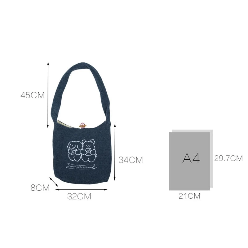 This friend Fluffy Shopping Bag is perfect for your everyday needs! The large capacity and comfortable single shoulder strap make it easy to carry all of your essentials. Plus, the fun cartoon prints and embroidery add a touch of personality. It’s the perfect bag for any female student shopper!