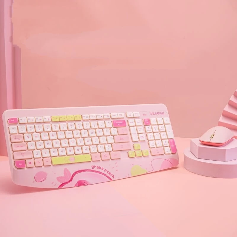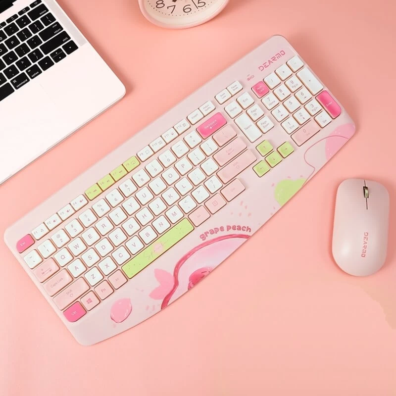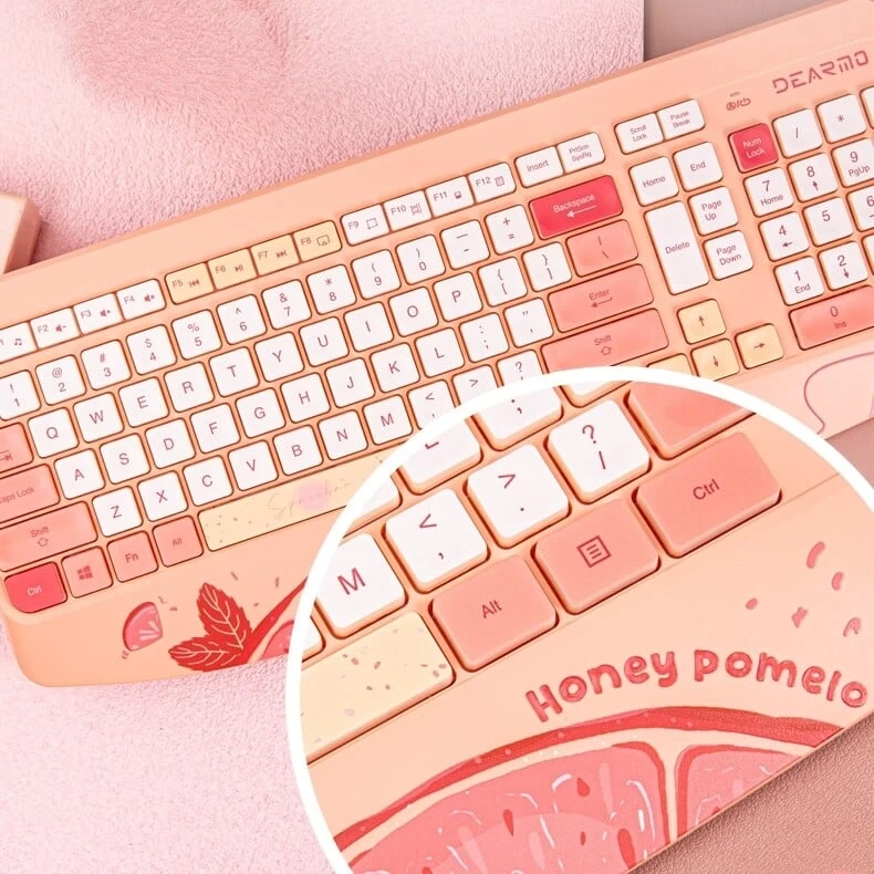 Introducing the Kawaii Fruit Print Wireless Keyboard and Mouse Set – Colorful Series, the perfect blend of cuteness and functionality for your office or home computer setup. Designed with an adorable fruit-themed print, this Kawaii wireless keyboard and mouse set is a must-have for girls who appreciate both style and efficiency.