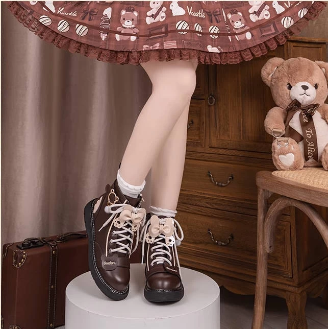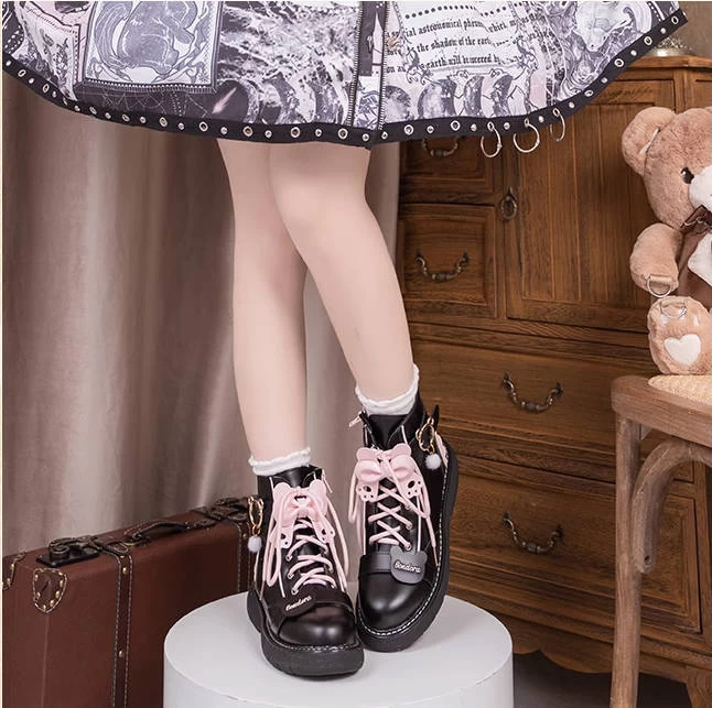 1 * Kawaii Japanese Pink Bear Bow Tie Lolita Martin Boots