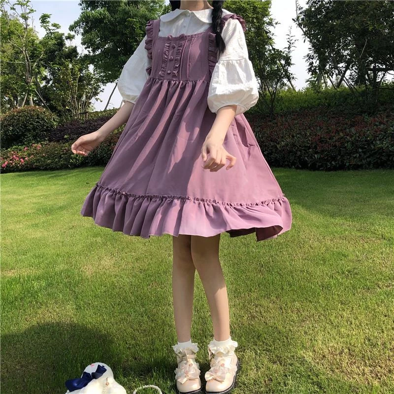 If you are looking for Kawaii Japanese Soft Girl Dress, then this is a perfect choice! This dress is soft and has a cute design like most Lolita clothing. The outfit includes suspenders with lanterns on them, this would make for an adorable outfit to wear on your next date or even if you want to go out for some fun with friends. It comes in multiple colors that all look very nice.