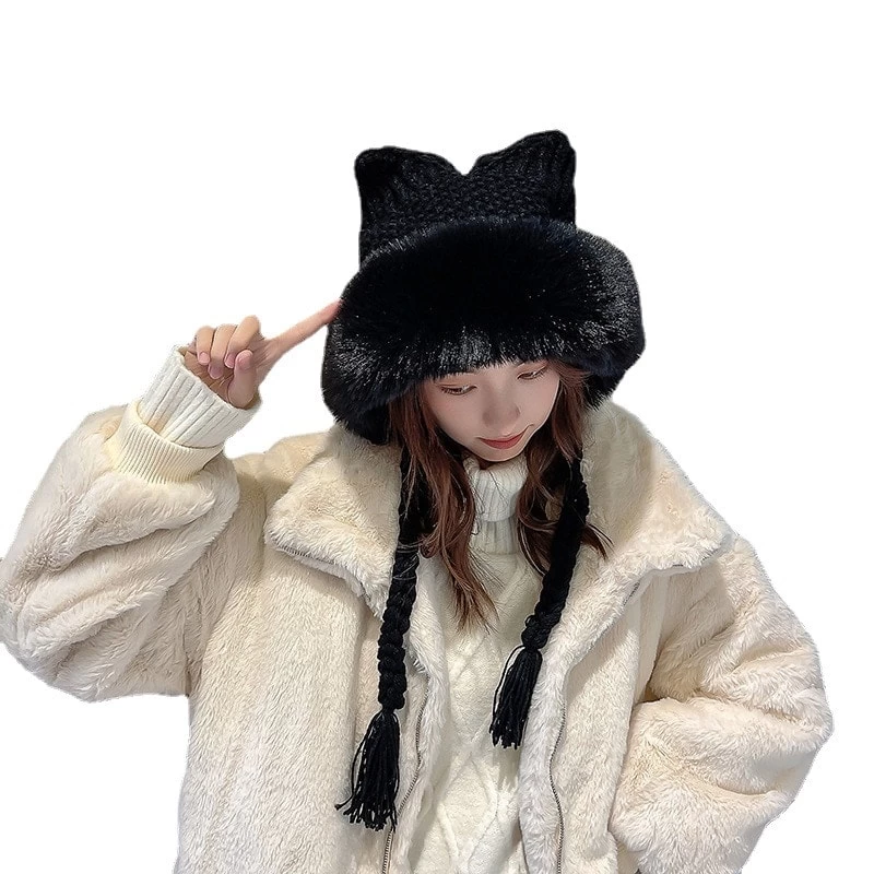 Introducing the Kawaii Kitty Ears Plush Wooly Hat Hood! This cozy and stylish hat is perfect for keeping your head warm this winter. The cute kitty ears and braided detailing add a fun and playful touch, while the soft wool material will keep you comfortable all day long.