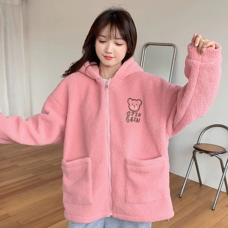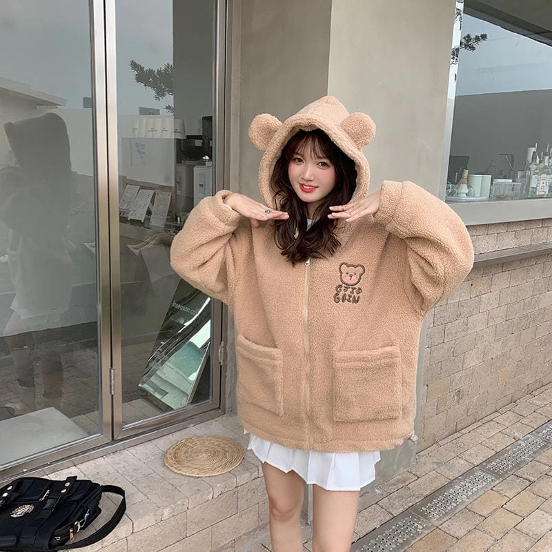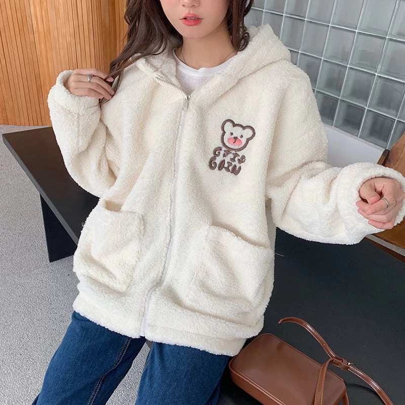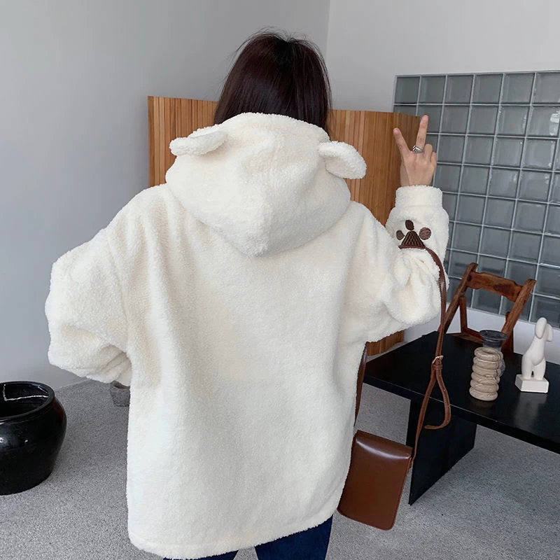 Introducing the Kawaii Lamb Plush Bear Hoodie! This ultra-soft and cuddly hoodie will keep you warm all winter long. It features a large kawaii lamb plush bear embroidery on the back, along with a zip-up front and oversized hood. Made from premium plush velvet fabric, it’s sure to become your new favorite go-to for cozy days indoors.