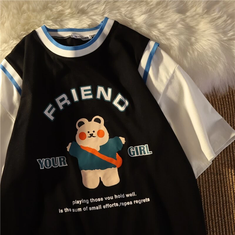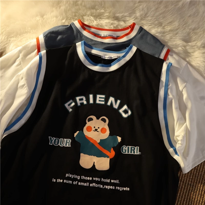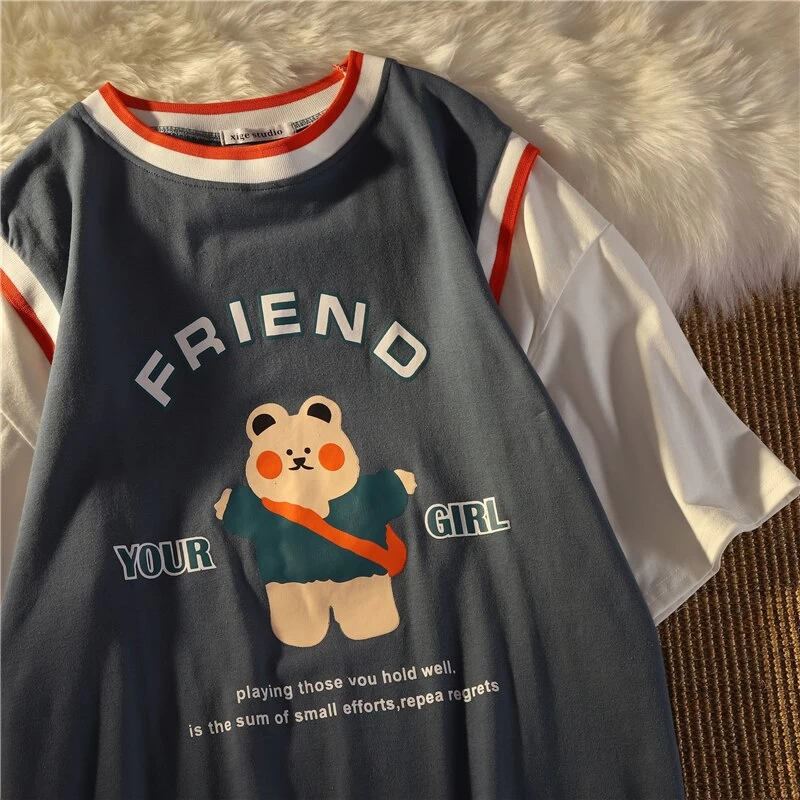 Wow-what a find! We found this lovely bear tee with loose stitching for an unbelievably low price. It’s a must-have for any lover of the adorable ursids. True to size, this oversized crewneck t-shirt is perfect for wearing as a top or as a couple of outfits with jeans and sneakers. You’ll love this cute design that features two bears in a forest scene!