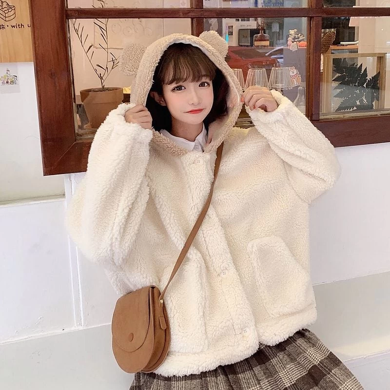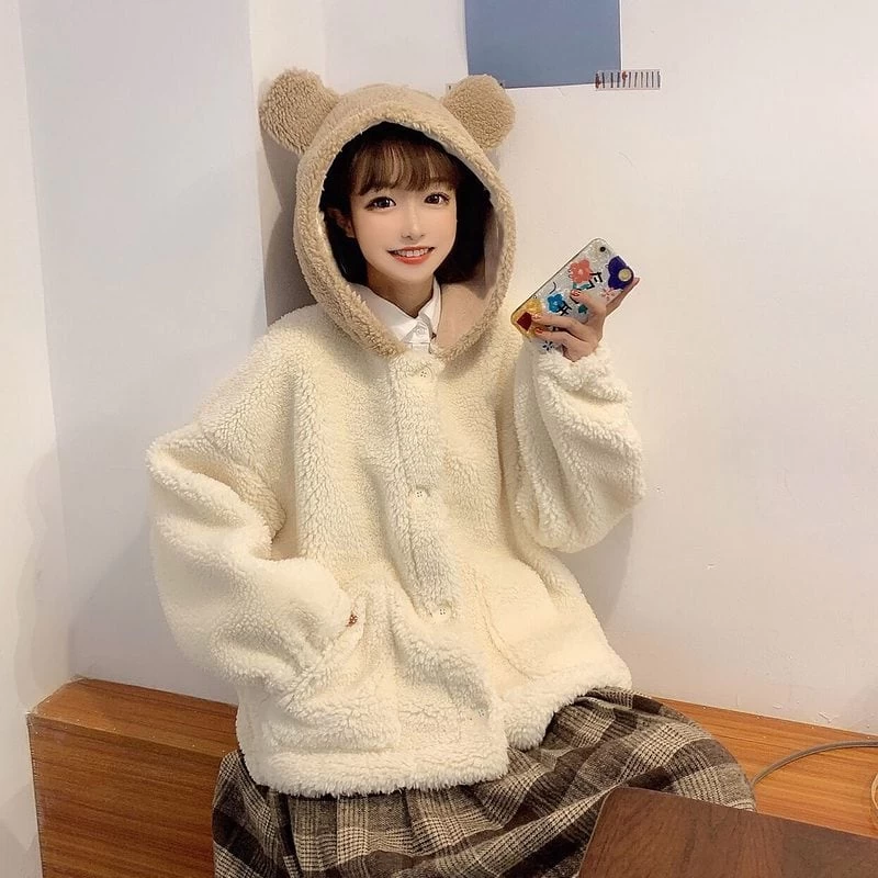 This Kawaii Loose Cute Bear Hoodie is perfect for autumn and winter! It’s warm and thick, with cute bear ears and a hood to keep you cozy. It’s perfect for schoolgirls or anyone who wants to feel cute and stylish while staying warm.
