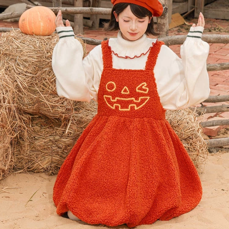 Elevate your festive wardrobe with the Kawaii Orange Halloween Funny Pumpkin Suspender Dress, a delightful blend of whimsy and charm perfect for the 2024 autumn and winter seasons. This playful piece captures the spirit of Halloween with its vibrant orange hue, making it a standout choice for any seasonal gathering or event. Designed as an original statement piece, this Kawaii suspender dress combines cuteness with functionality, ensuring you not only look fabulous but feel comfortable too.