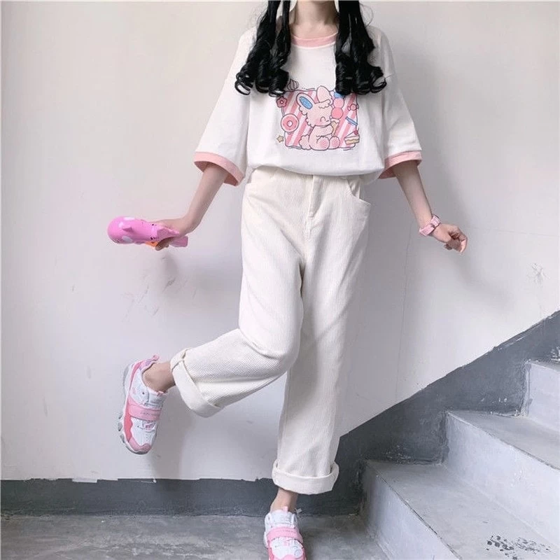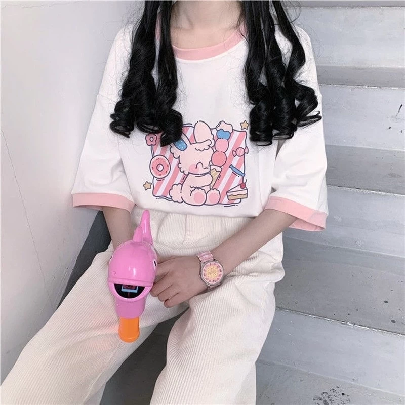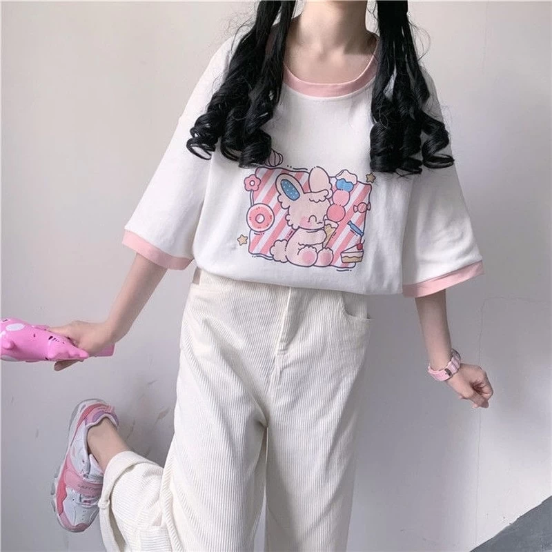 Is there anything as cute as Kawaii? This Kawaii Pink Cartoon Graphic T-shirt is perfect for any fan of Japanese street fashion. The pink and cartoon graphics are sure to turn heads, and the short sleeves make it perfect for summer weather. Whether you’re out shopping or just hanging out with friends, this T-shirt is a great choice for any occasion.