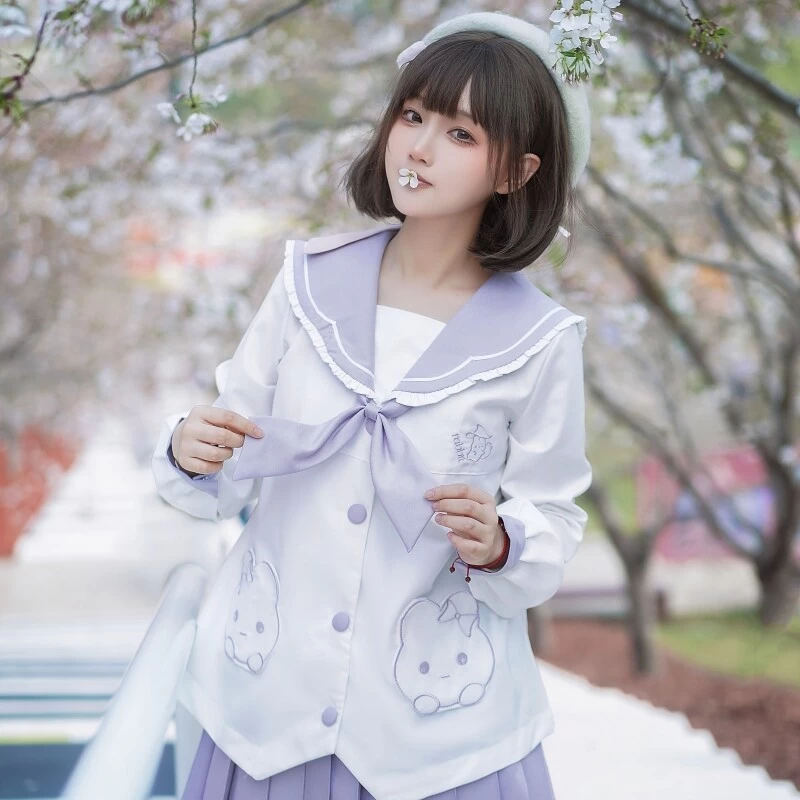 Introducing our Kawaii Pink Cartoon Rabbit Embroidered JK Uniform Skirt Suit, the ultimate embodiment of cuteness and style! Made with original genuine material, this uniform suit is perfect for those who appreciate the adorable aesthetics of Japanese fashion. The polyester texture ensures a comfortable fit that will make you feel at ease all day long. With sizes ranging from XS to XL, everyone can find their perfect fit in this delightful JK skirt suit.