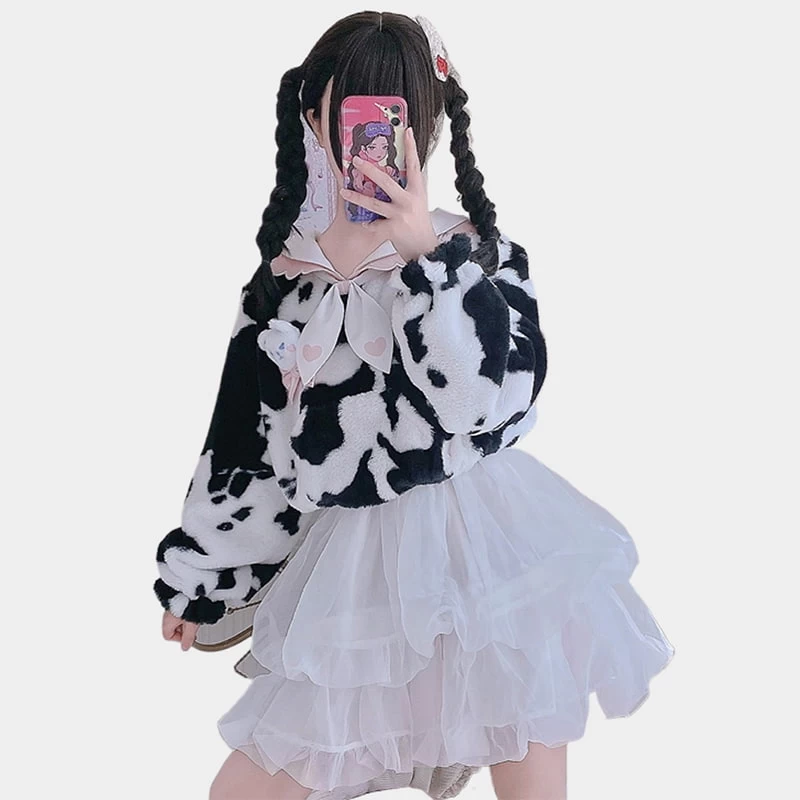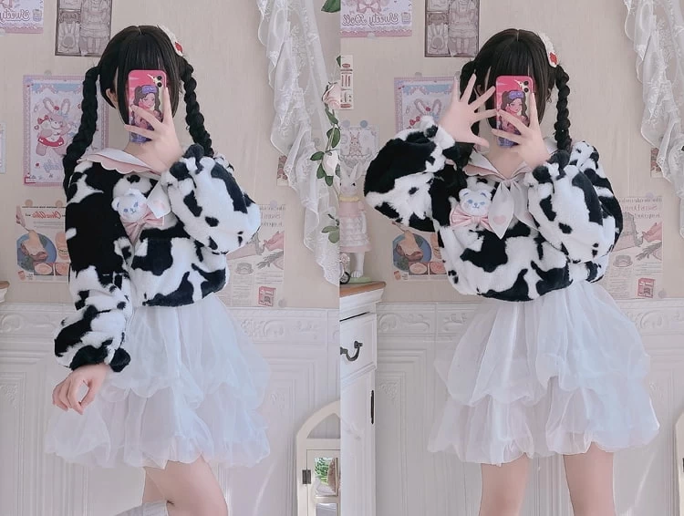 1 * Kawaii Plush Cow Print Jacket