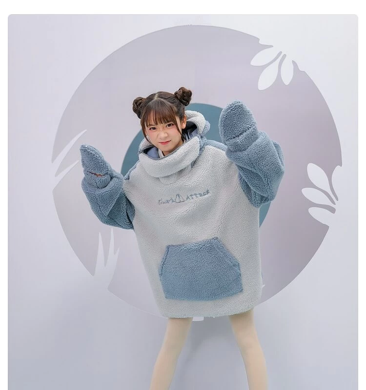 This Kawaii Shark Zipper Hoodie will keep you warm and looking stylish all winter long! The fleece fabric is soft and comfortable, while the cute shark print is sure to turn heads. This hoodie is perfect for couples or groups and makes a great gift for any occasion.