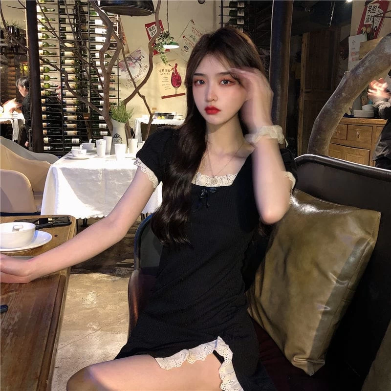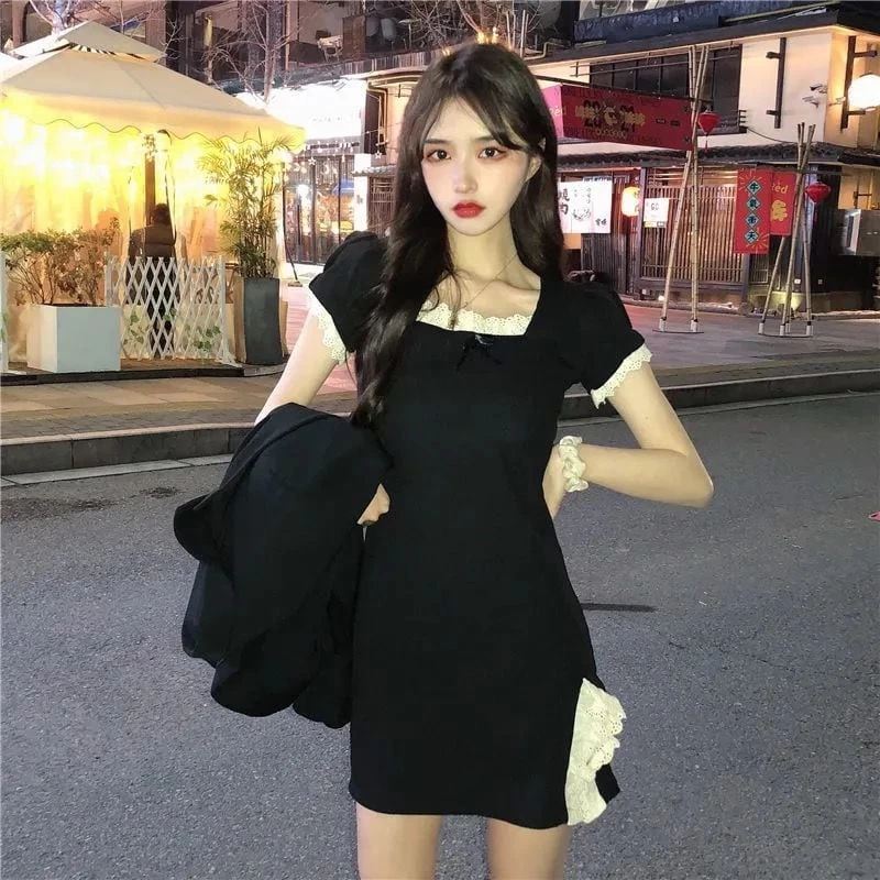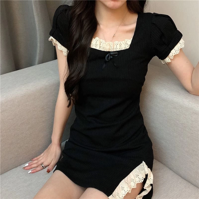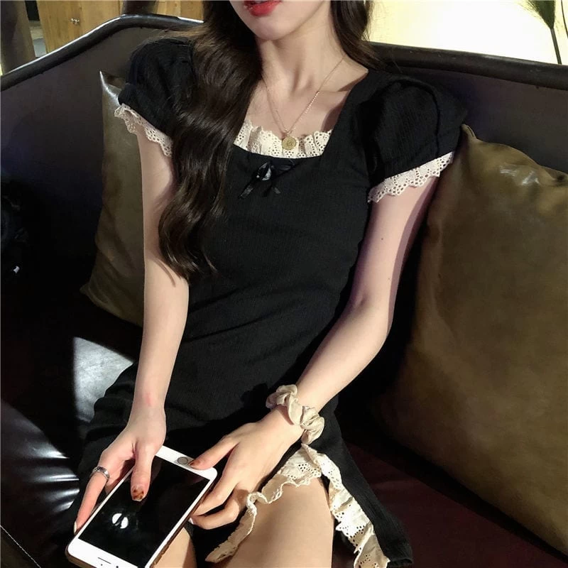 1 * Kawaii Slim Fitted Side Slit Black Short Dress