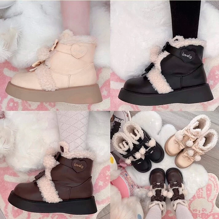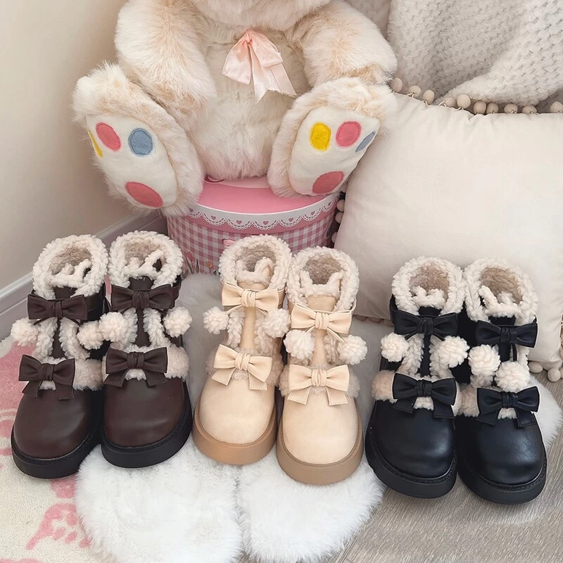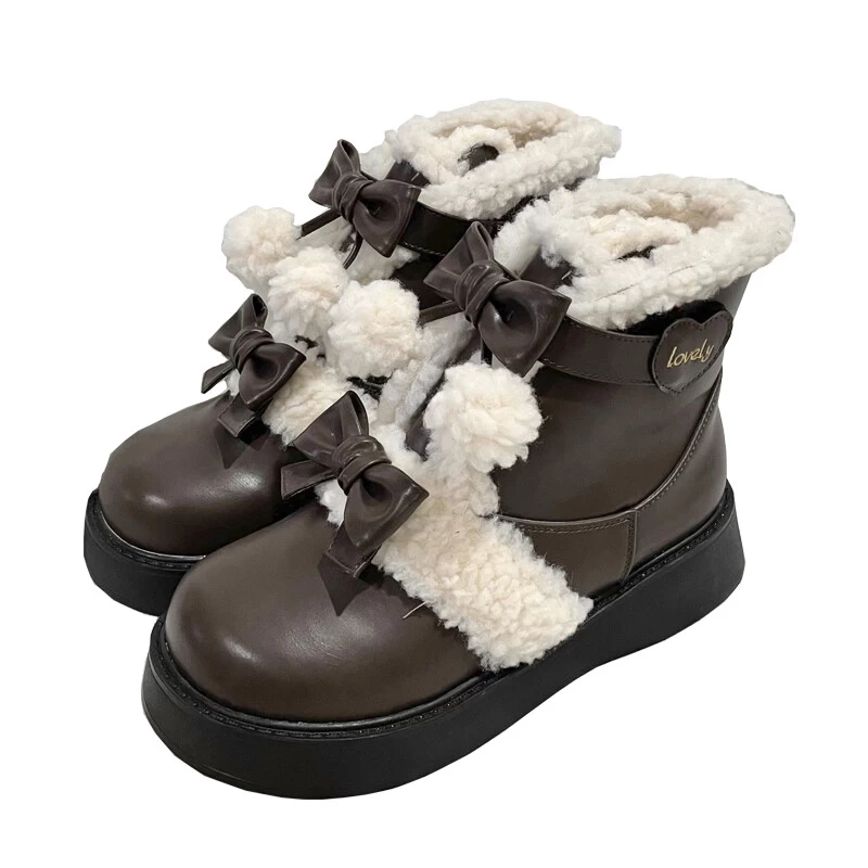 Step up your winter-style game with our Kawaii Soft Girl Lolita Style Round Toe Snow Boots. These aren’t just any boots; they’re a statement of your style, fusing the adorable aesthetics of Lolita and soft girl trends. Available in three chic nuances – black, milk tea, and brown – these Snow boots are designed to complement any outfit while keeping you cozy all winter long.