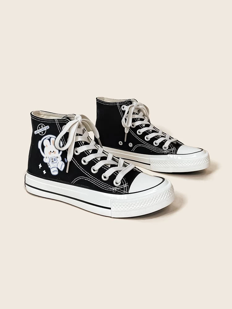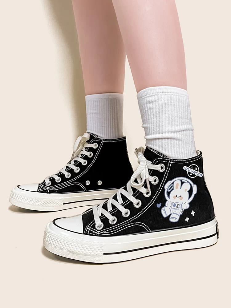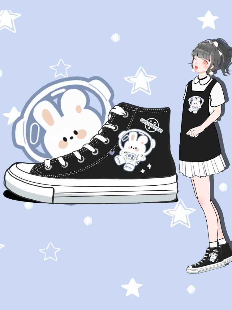 Are you looking to add some cutesy style to your wardrobe? Look no further than the Kawaii Space Bunny Canvas Hi Tops Canvas Shoe! Featuring a cute girl heart cartoon on canvas, these high-top Canvas shoes are perfect for adding a pop of color and fun to any outfit. Plus, with an inside velvet upper layer, these Canvas shoes provide maximum comfort and cushioning so you can feel great all day long.