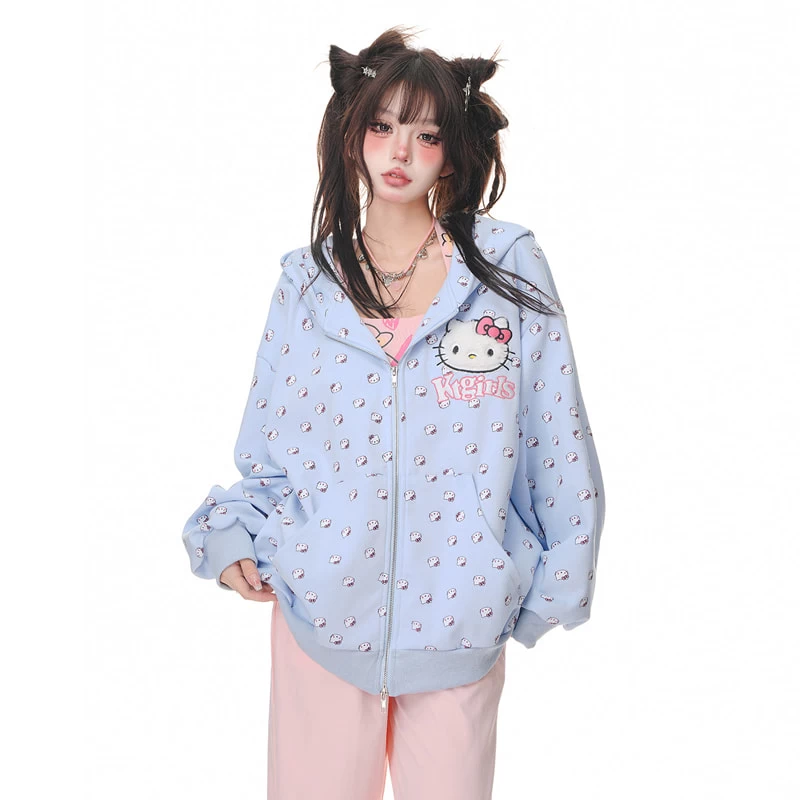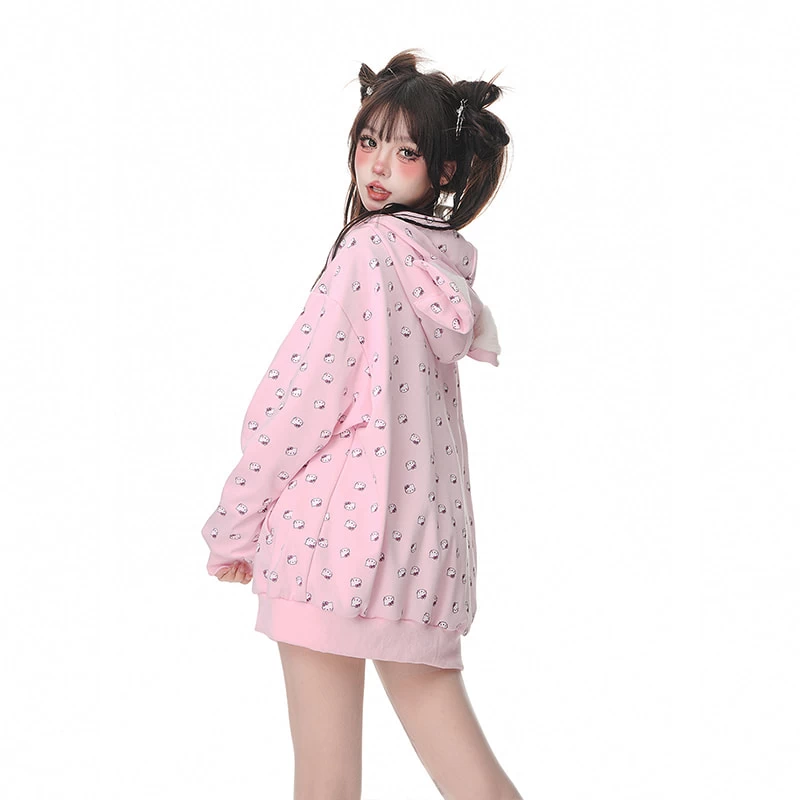 Embrace your inner cuteness with our Kawaii Sweet Girl Style Hello Kitty Printed Hooded Coat, the perfect blend of comfort and charm for early autumn! This adorable jacket features a playful Hello Kitty design that radiates cheerful vibes while keeping you cozy. Crafted from a premium blend of 70% polyester fiber and 30% other materials, it delivers just the right amount of warmth without feeling bulky—ensuring you look effortlessly stylish on crisp days.